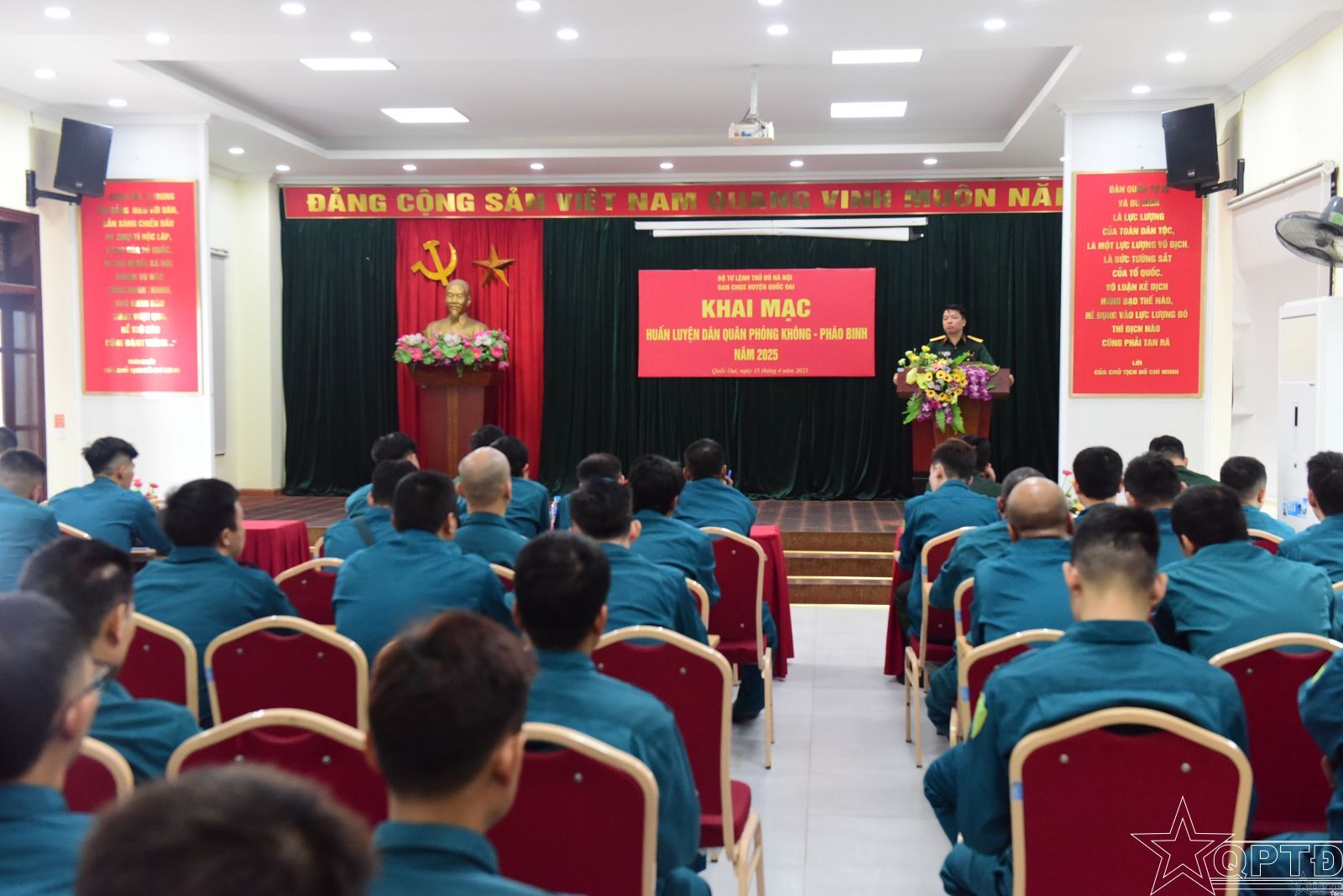 QPTĐ-Sáng 15/4, Ban CHQS huyện Quốc Oai đã khai mạc huấn luyện lực lượng dân quân phòng không, pháo binh năm 2025 nhằm nâng cao chất lượng tổng hợp, khả năng sẵn sàng chiến đấu của lực lượng dân quân nói chung, dân quân phòng không-pháo binh nói riêng, góp phần bảo vệ an ninh vùng trời, chủ động ứng phó với các tình huống có thể xảy ra.