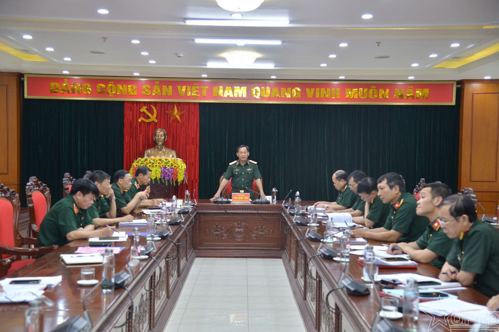 QPTĐ-Sáng 25/4, Trung tướng Trần Ngọc Tuấn, Chính ủy Bộ Tư lệnh Thủ đô (BTLTĐ) Hà Nội đã làm việc với Cục Hậu cần-Kỹ thuật (HCKT) về công tác chuẩn bị Đại hội Đảng bộ nhiệm kỳ 2025-2030 và một số nhiệm vụ trọng tâm như công tác thu hồi, quản lý VKTB, xây dựng doanh trại, sử dụng nhà công vụ… Cùng làm việc có Thiếu tướng Nguyễn Đình Lưu, Phó Tư lệnh BTLTĐ Hà Nội.