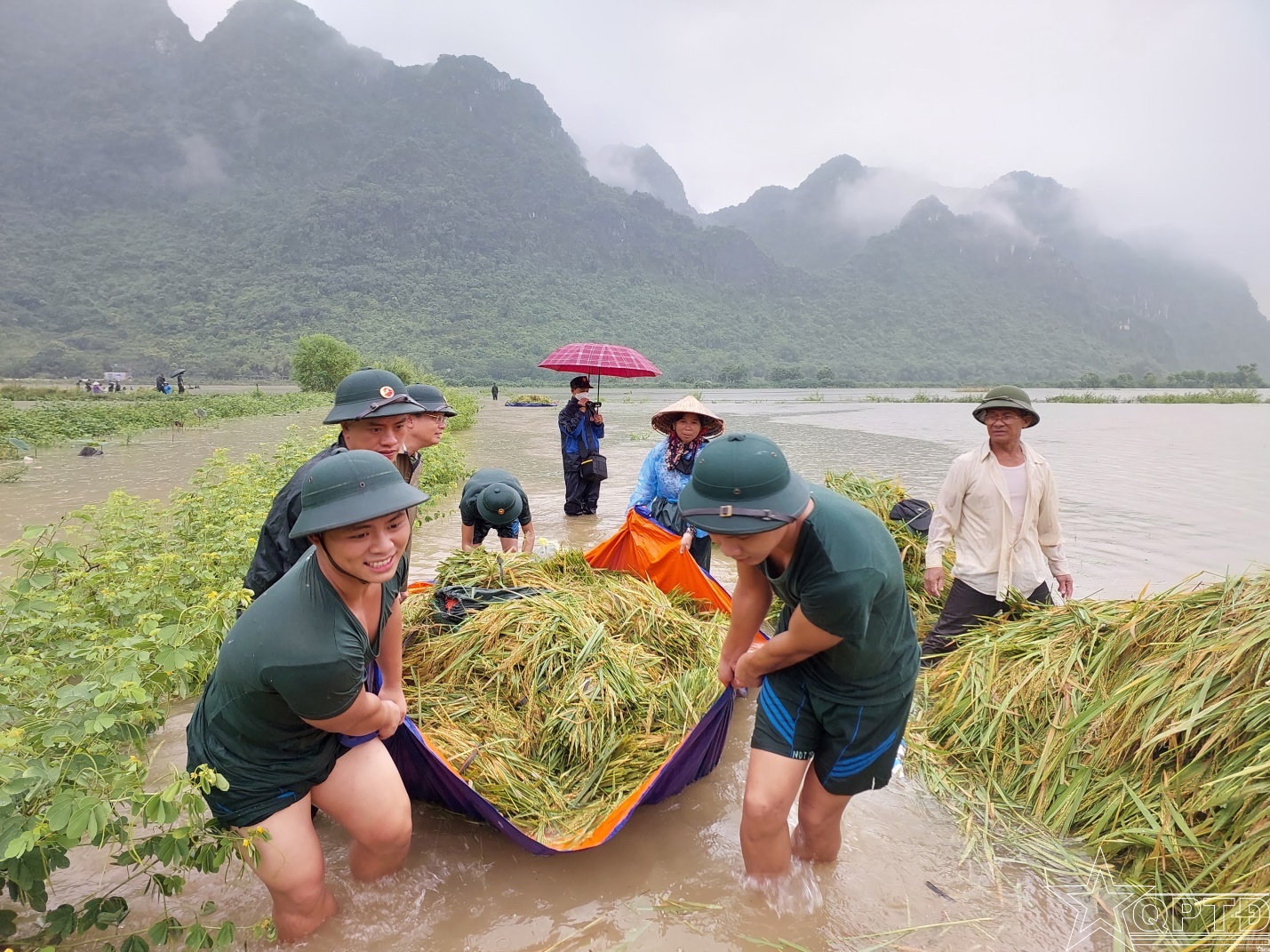 Cán bộ, chiến sĩ Sư đoàn Bộ binh 301 giúp nhân dân xã Đa Phúc thu hoạch lúa chạy lũ trong cơn bão số 10 năm 2025.