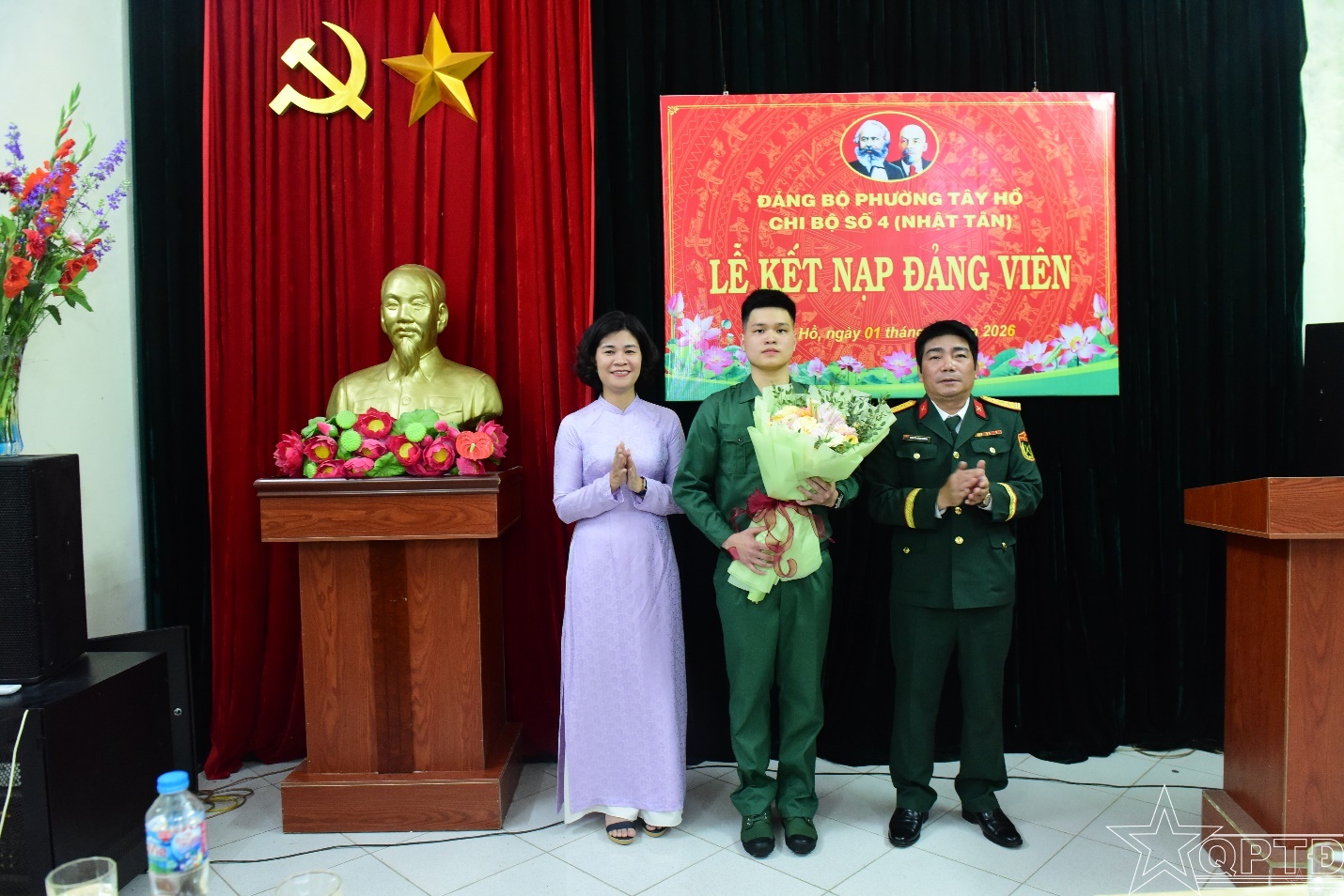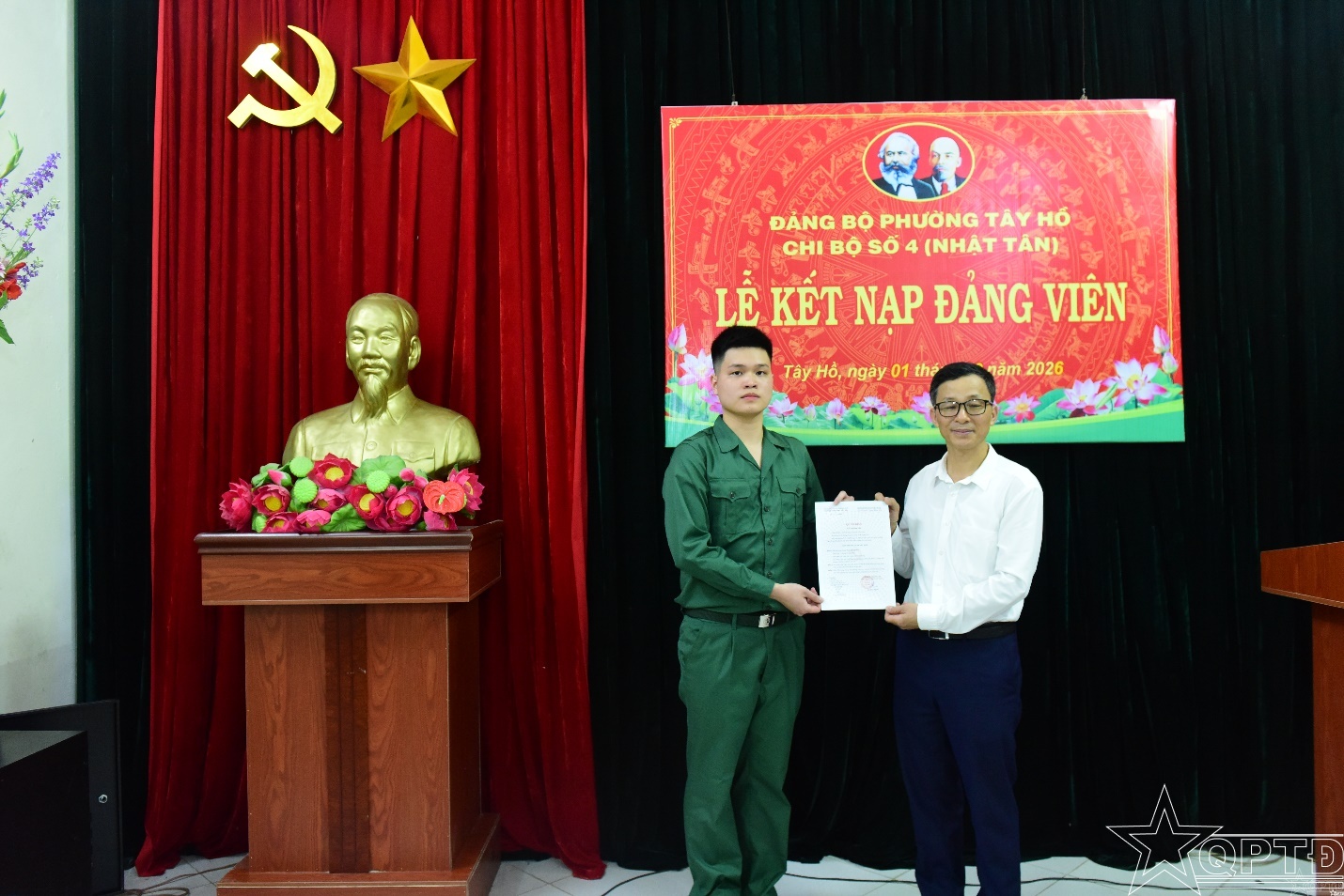 QPTĐ-Tối ngày 1 tháng 3, tại Nhà văn hóa Tổ dân phố số 4 (phường Tây Hồ), Chi bộ 4 -Nhật Tân đã long trọng tổ chức Lễ kết nạp Đảng viên cho quần chúng ưu tú Đinh Quang Huy-thanh niên chuẩn bị lên đường nhập ngũ năm 2026.