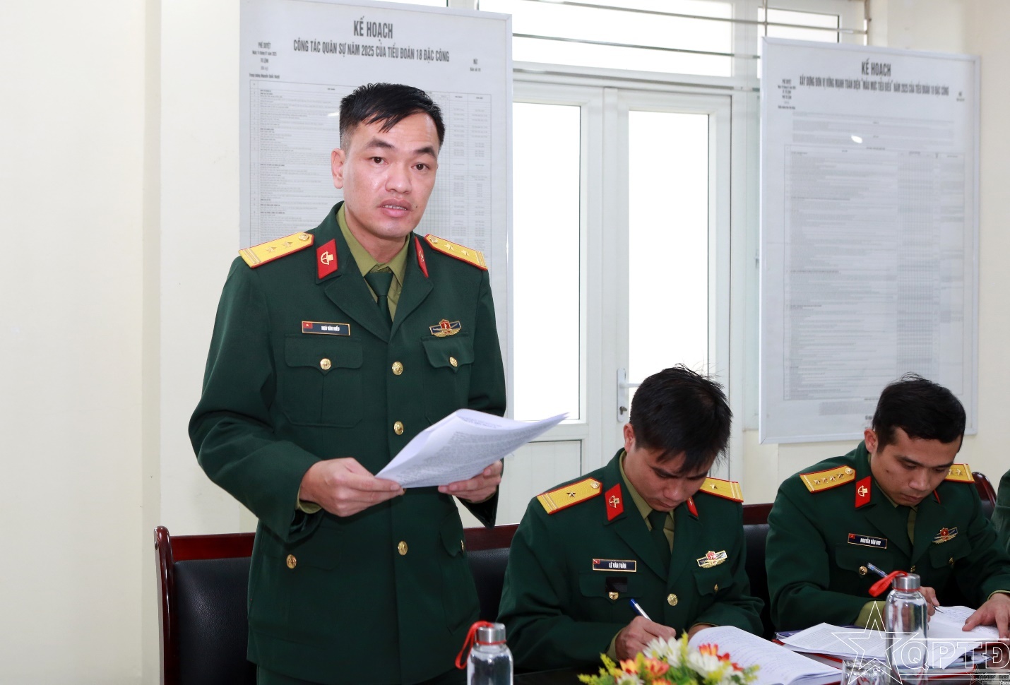 Chỉ huy Tiểu đoàn báo cáo dự thảo Nghị quyết lãnh đạo thực hiện nhiệm vụ năm 2026.