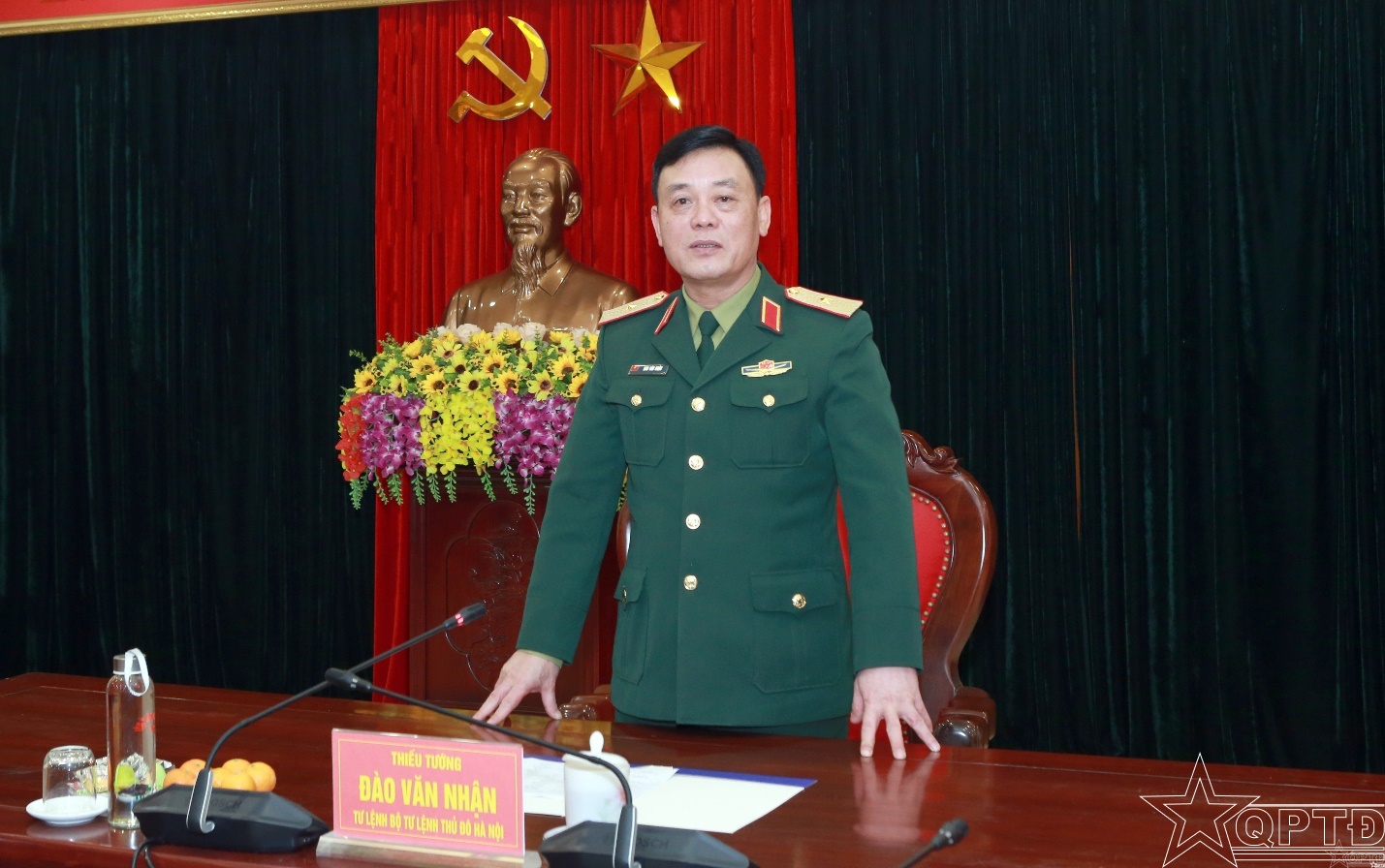 Thiếu tướng Đào Văn Nhận, Uỷ viên Ban Thường vụ Thành uỷ, Tư lệnh Bộ Tư lệnh Thủ đô Hà Nội phát biểu .