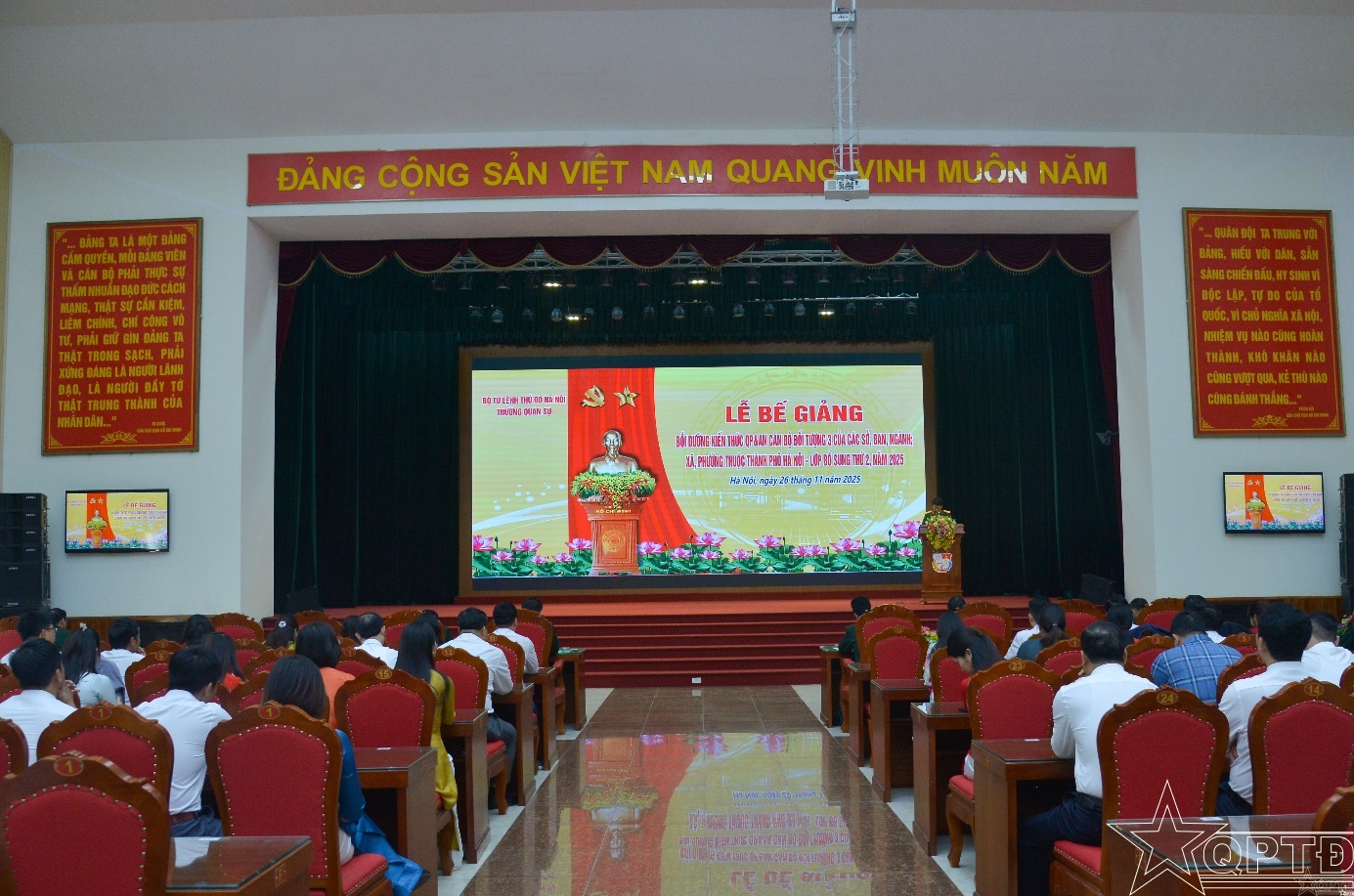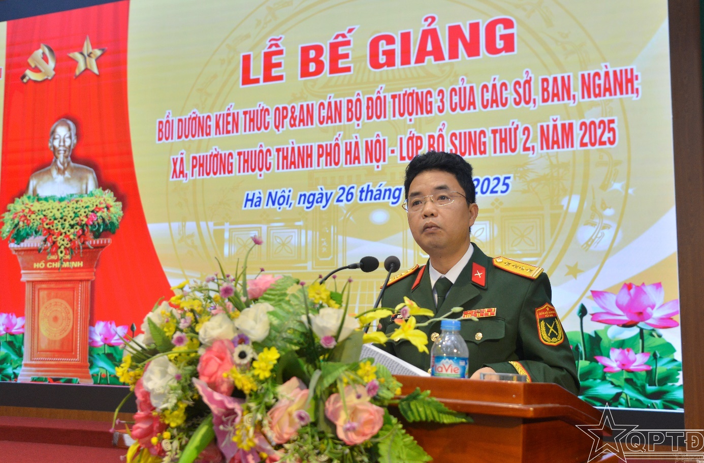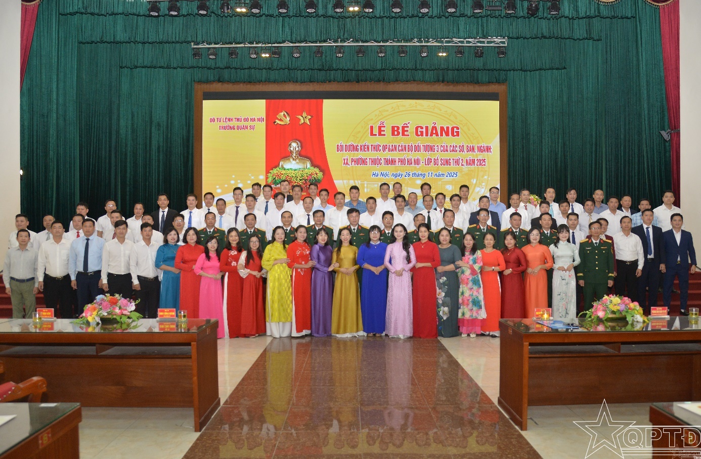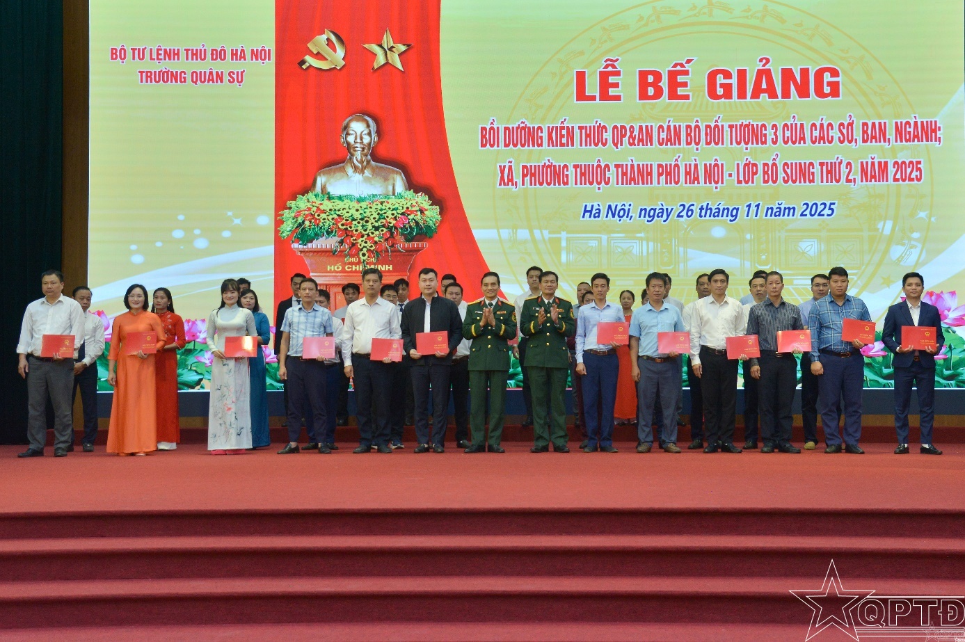 QPTĐ-Chiều 26-11, Trường Quân sự, Bộ Tư lệnh Thủ đô Hà Nội tổ chức Lễ Bế giảng bồi dưỡng kiến thức quốc phòng và an ninh (QP-AN) cho 80 đồng chí cán bộ đối tượng 3 của các sở, ban, ngành, xã, phường (lớp bổ sung thứ 2) trên địa bàn thành phố Hà Nội năm 2025.
