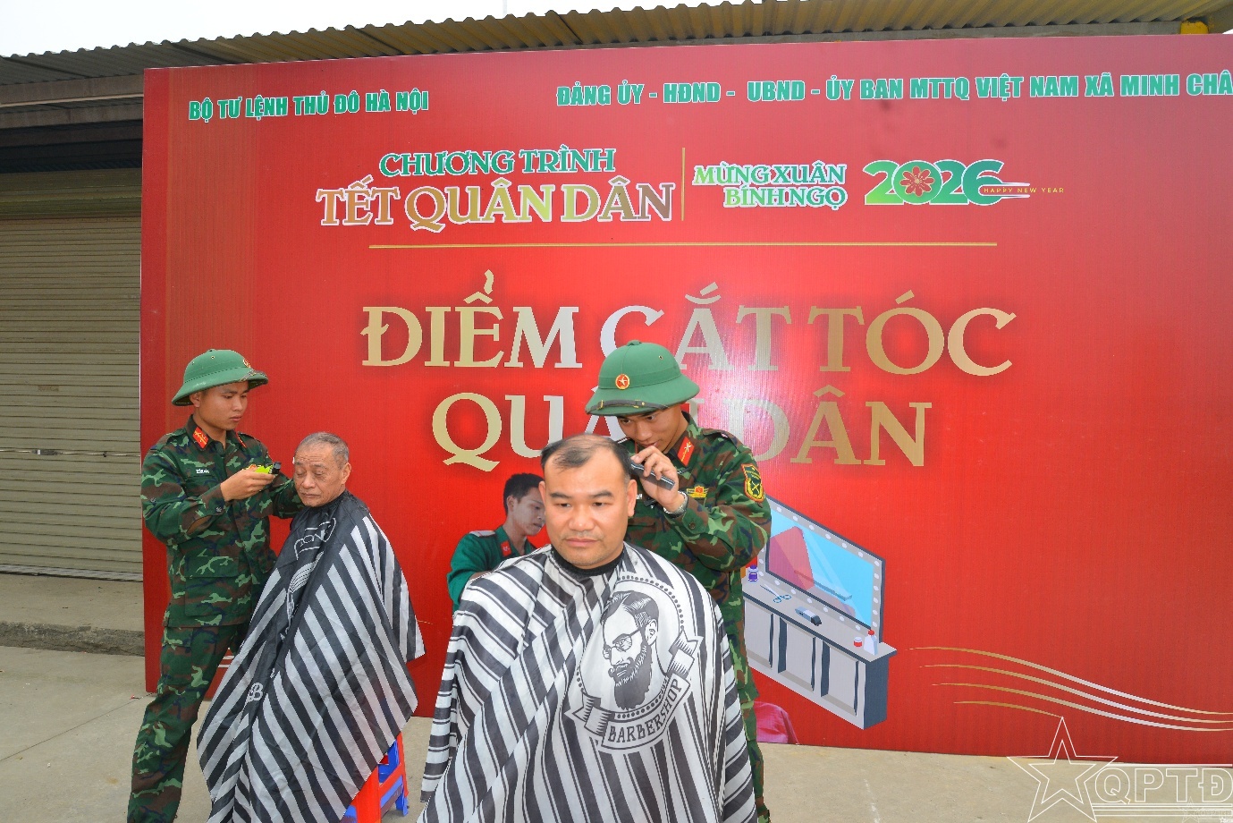 Đông đảo nhân dân tin tưởng giao cho bộ đội cắt tóc.