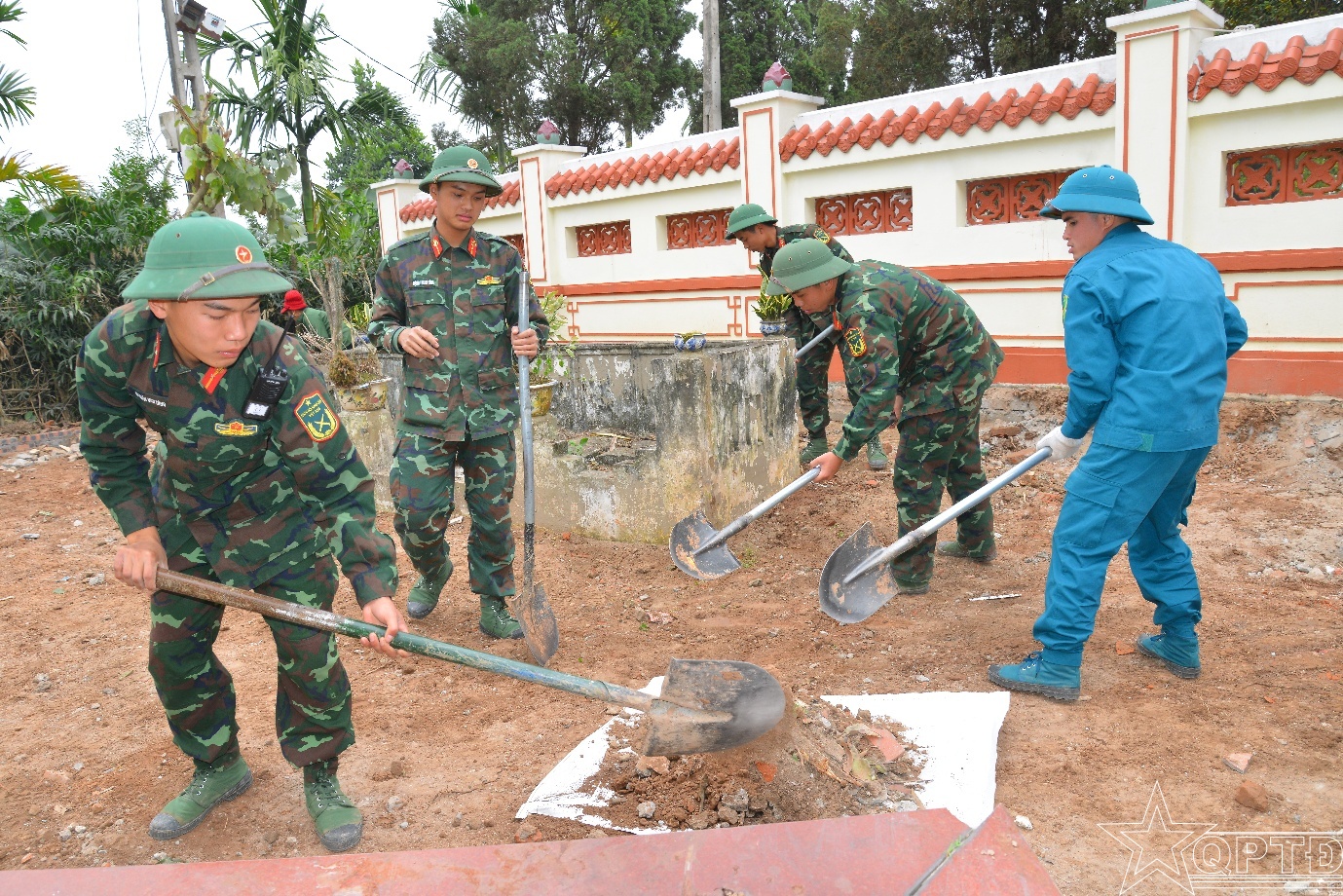 Sự đồng hành của nhân dân càng thể hiện rõ nét trong hoạt động tu sửa, chăm sóc Nghĩa trang Liệt sĩ xã Minh Châu. Trong không gian trang nghiêm, khi cán bộ, chiến sĩ cẩn thận lau từng tấm bia mộ, chỉnh trang lối đi, nhiều người dân đã tự nguyện cùng tham gia. Có cụ già chống gậy ra nghĩa trang từ sớm, có người mang theo khăn, chổi, lặng lẽ cùng bộ đội dọn dẹp. Chứng kiến cảnh ấy, ông Trần Văn Bình, cựu chiến binh ở thôn Chu Chàng, không giấu được niềm vui, xúc động cho biết: “Tôi từng là lính, nên nhìn các cháu bộ đội làm việc ở nghĩa trang mà thấy rất xúc động. Các cháu làm với tất cả sự thành kính, chu đáo. Nhân dân chúng tôi thấy vậy không thể đứng ngoài. Đây không chỉ là dọn dẹp nghĩa trang, mà là cách để giáo dục con cháu về đạo lý "uống nước nhớ nguồn’”.