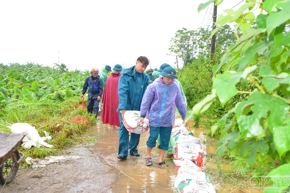 Ngay khi nhận được tin báo từ cơ sở, UBND xã đã huy động 1 máy xúc, 3 xe chở cát, hàng nghìn bao tải, 60 cán bộ, chiến sĩ dân quân phối hợp cùng các ban, ngành, đoàn thể địa phương tổ chức đắp 600 mét đê ngăn lũ.