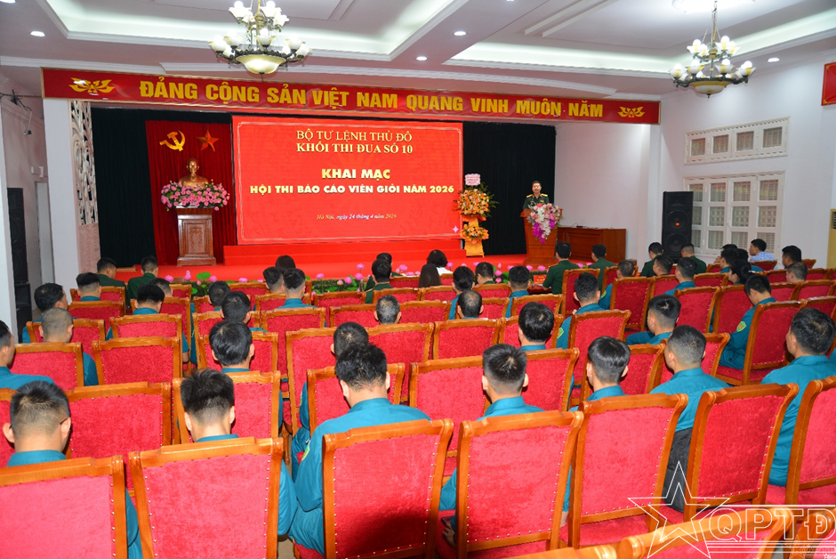 QPTĐ-Sáng 22/4, Khối thi đua số 10 Bộ Tư lệnh Thủ đô Hà Nội gồm Ban CHQS các phường, xã: Bồ Đề; Việt Hưng; Vĩnh Thanh; Thiên Lộc; Đông Anh đã tổ chức Hội thi Báo cáo viên giỏi năm 2026.