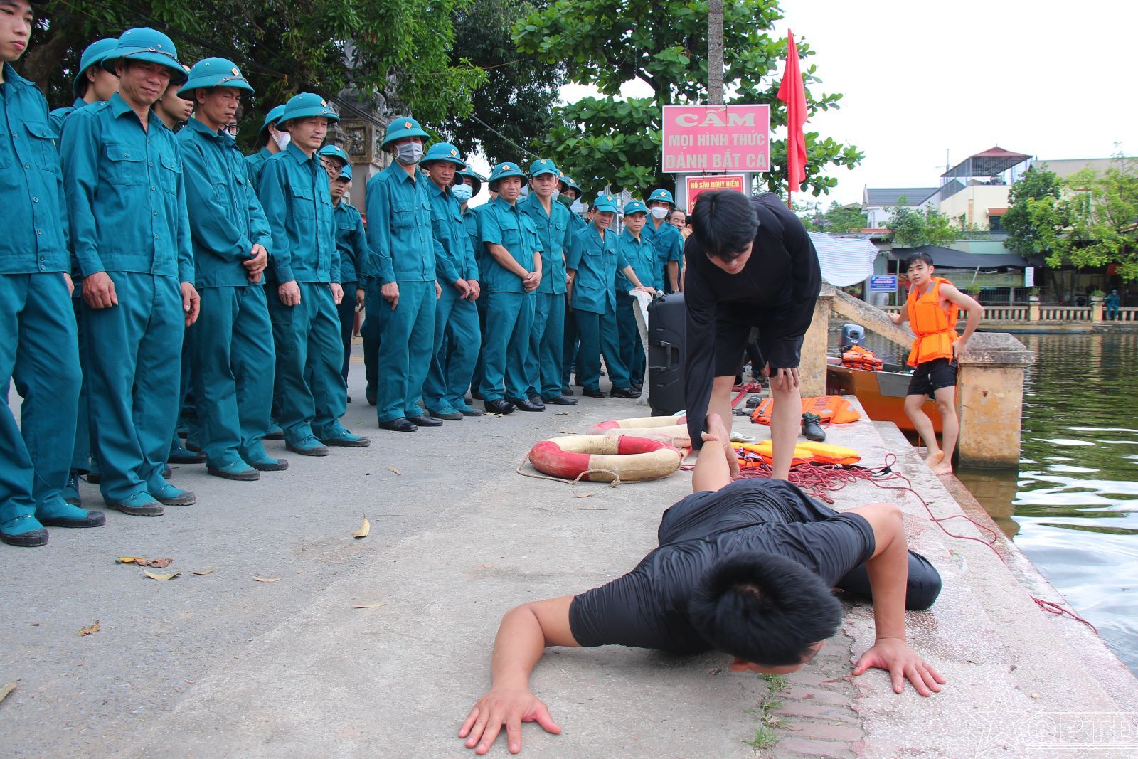 Tập huấn kỹ thuật thoát hiểm khi cứu người bị đuối nước.