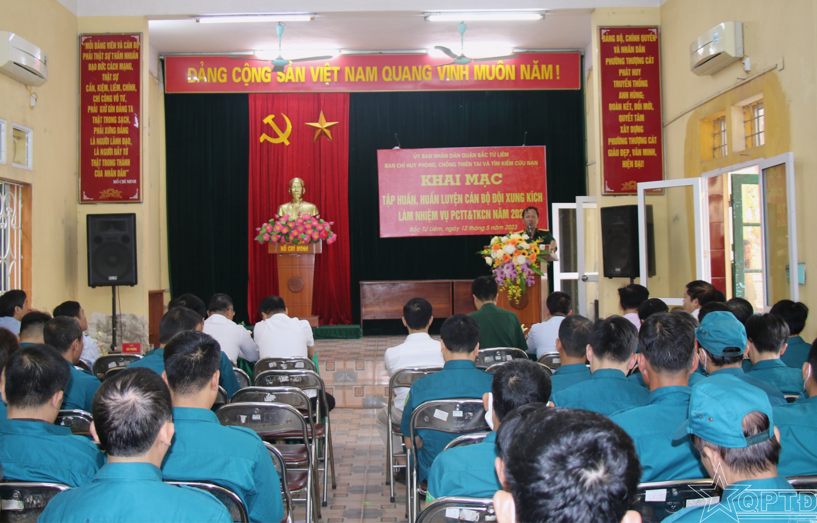 QPTĐ-Sáng ngày 12-5, Ban Chỉ huy Phòng chống thiên tai và tìm kiếm cứu nạn (PCTT&TKCN) quận Bắc Từ Liêm tổ chức khai mạc tập huấn, huấn luyện cán bộ đội xung kích làm nhiệm vụ PCTT & TKCN năm 2023 tại trụ sở UBND phường Thượng Cát.