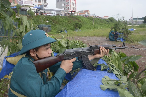 Hiệu lệnh “Cuộc diễn tập thực binh bắt đầu”. Các chiến sĩ dân quân xã chia thành nhiều tổ, mũi, hướng khác nhau kết hợp các loại hỏa lực nhanh chóng tiêu diệt lực lượng địch và làm chủ trận địa. Ngay sau đó, lực lượng dân quân phối hợp nhịp nhàng cùng các ban, ngành, đoàn thể, y tế xã có mặt kịp thời để tiến hành công tác khắc phục hậu quả. Nhờ có sự chuẩn bị chu đáo, tỉ mỉ, hiệp đồng chặt chẽ giữa các lực lượng của địa phương nên các nội dung trong diễn tập thực binh thành công tốt đẹp, bảo đảm an toàn về người và vũ khí trang bị. Vừa tham gia diễn tập, đồng chí Đỗ Viết Nguyện, chiến sĩ dân quân binh chủng xã, chia sẻ: Qua 5 ngày tham gia huấn luyện chuẩn bị cho phần thực binh trong diễn tập, dù thời tiết mưa nhiều, nhưng tôi cũng như các đồng chí khác trong trung đội đều cố gắng khắc phục khó khăn và hoàn thành tốt nhiệm vụ, góp phần vào sự thành công diễn tập ngày hôm nay.