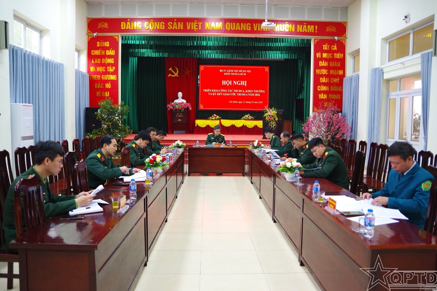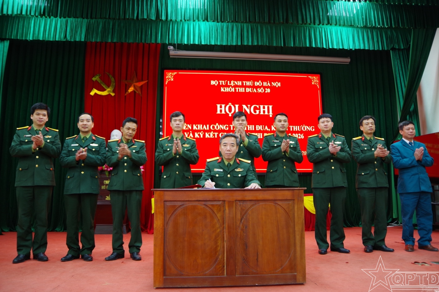 QPTĐ-Sáng 12-2, Khối thi đua số 20 Bộ Tư lệnh Thủ đô Hà Nội gồm Ban CHQS các xã: Vân Đình, Ứng Hòa, Hòa Xá, Hồng Sơn, Mỹ Đức, Hương Sơn, Chuyên Mỹ, Phú Xuyên, Đại Xuyên đã tổ chức hội nghị triển khai công tác thi đua, khen thưởng và ký kết giao ước thi đua năm 2026. Đại tá Nguyễn Hồng Dương, Phó Chủ nhiệm Chính trị Bộ Tư lệnh Thủ đô Hà Nội dự và phát biểu chỉ đạo.
