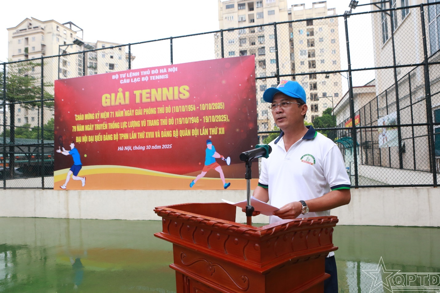 Đại tá Phùng Chí Cao, Phó Tham mưu trưởng Bộ Tư lệnh Thủ đô Hà Nội, Chủ tịch Câu lạc bộ Tenis phát biểu khai mạc.