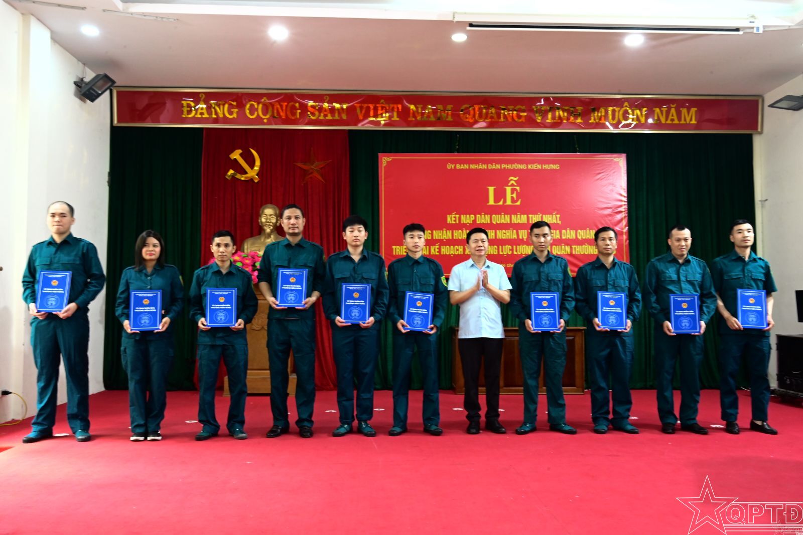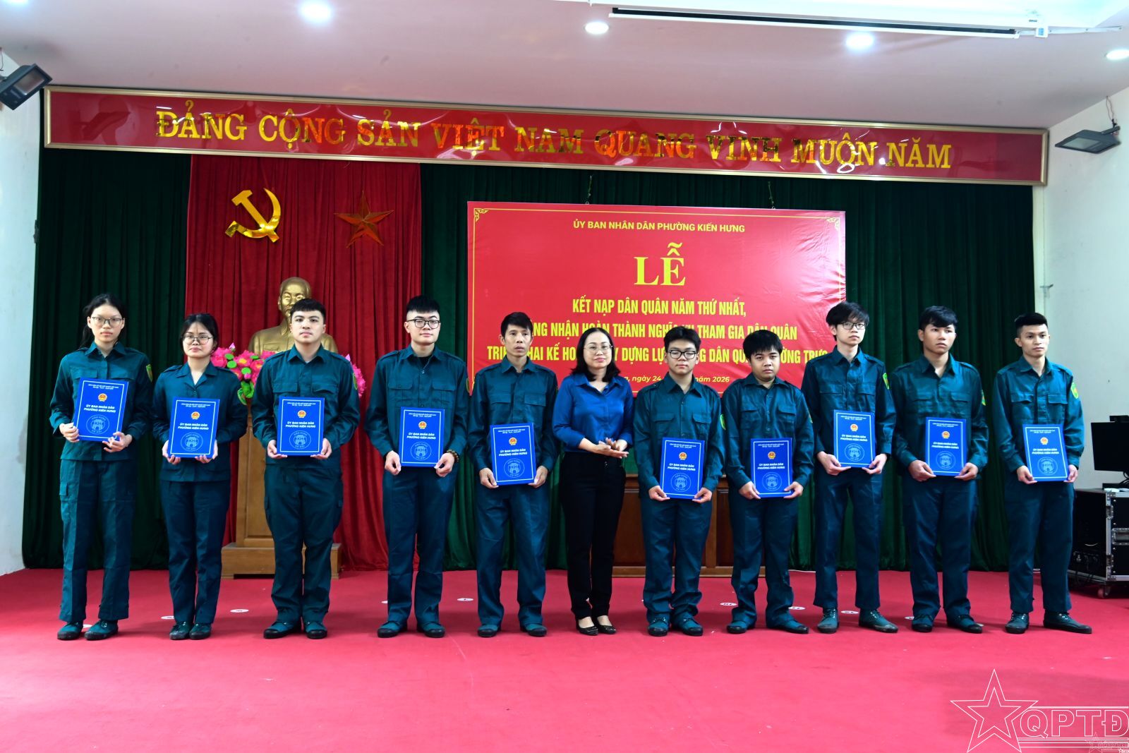 QPTĐ-Chiều 26-4, UBND phường Kiến Hưng đã tổ chức Lễ kết nạp dân quân năm thứ nhất và công nhận hoàn thành nghĩa vụ tham gia dân quân năm 2026.