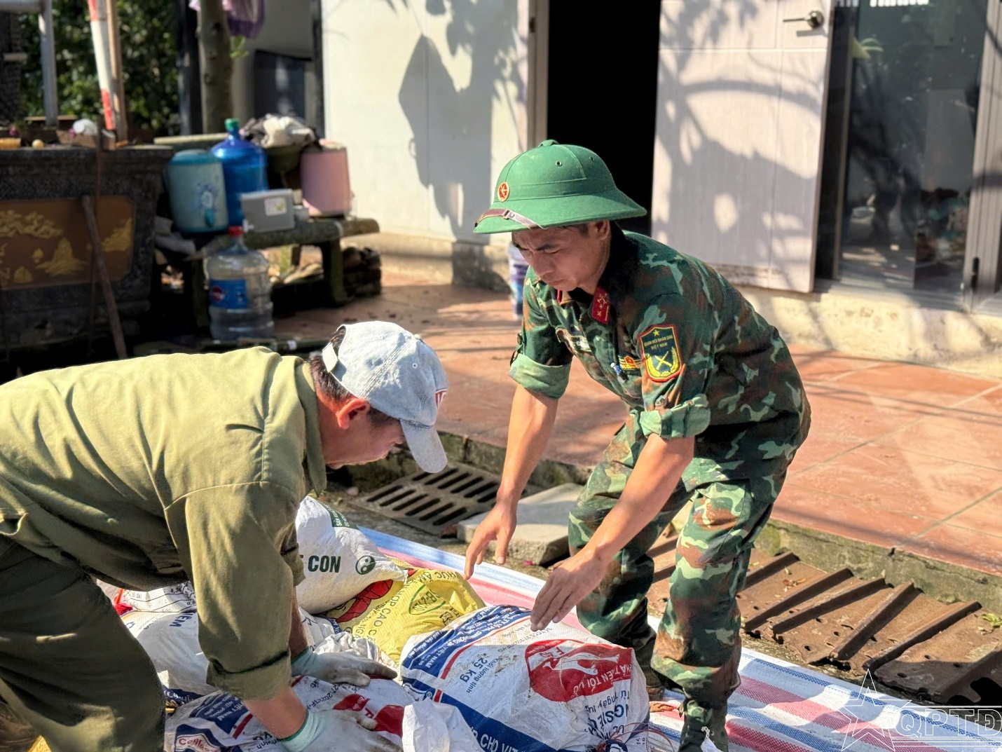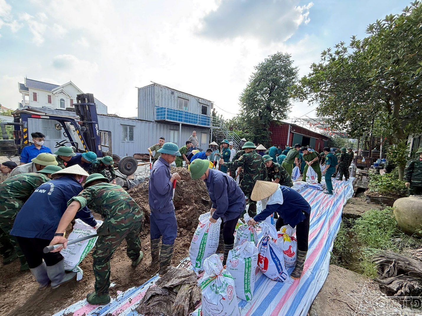 QPTĐ-Chiều 8/10, Tiểu đoàn Công binh 544, Bộ Tư lệnh Thủ đô Hà Nội đã huy động cán bộ, chiến sĩ phối hợp với các lực lượng tham gia khắc phục hậu quả hoàn lưu bão Matmo, gia cố tuyến đê trên địa bàn xã Quang Minh, thành phố Hà Nội.