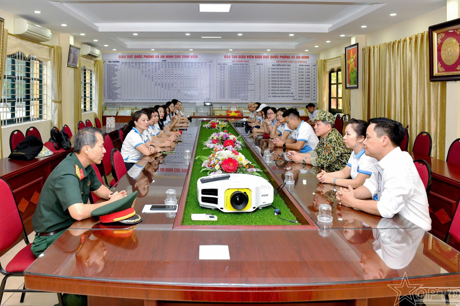 Đại tá.Tiến sĩ Hà Mạnh Hùng, PGD Trung tâm GDQP & AN trường ĐH SP HN 2 trao đổi kế hoạch hoạt động ngoại khóa- trải nghiệm, hướng nghiệp cùng các thầy cô trường THPT Lê Văn Thiêm