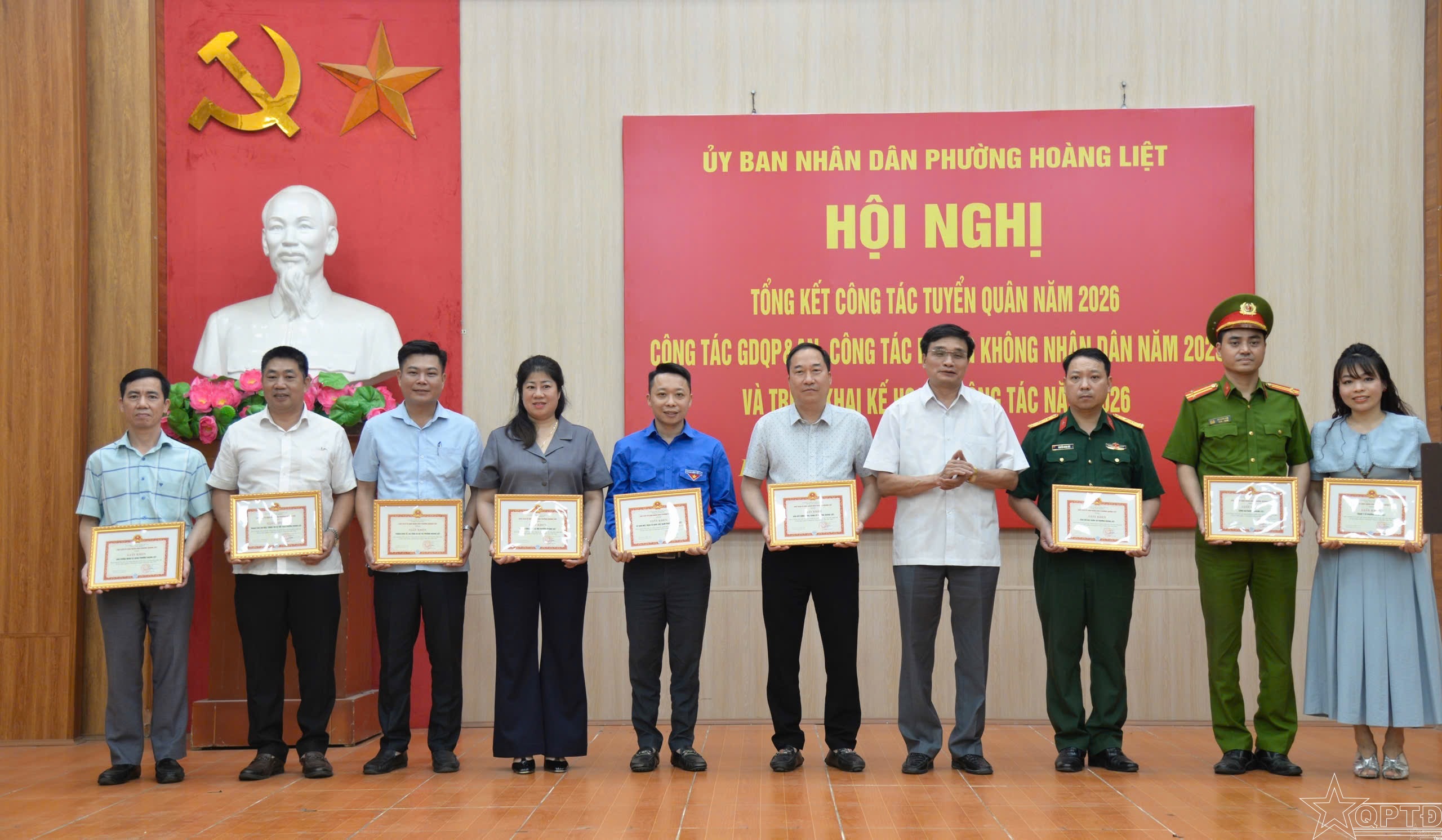 Nhân dịp này, UBND phường Hoàng Liệt đã khen thưởng các tập thể, cá nhân có thành tích trong công tác tuyển chọn, gọi công dân nhập ngũ, thực hiện nghĩa vụ tham gia Công an nhân dân năm 2026.