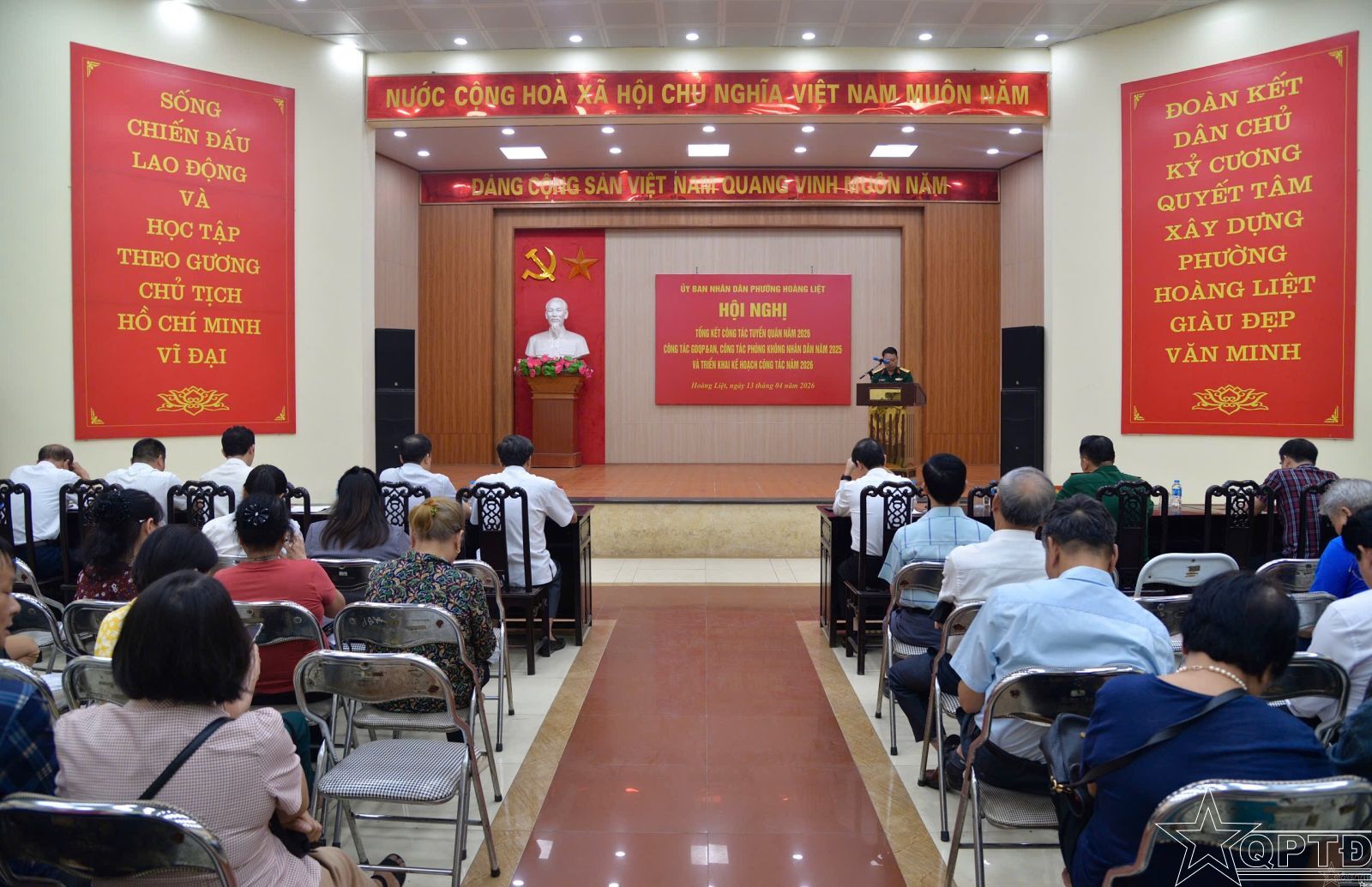 QPTĐ-Chiều 13-4, phường Hoàng Liệt đã tổ chức Hội nghị tổng kết công tác tuyển chọn, gọi công dân nhập ngũ và thực hiện nghĩa vụ tham gia Công an nhân dân năm 2026; công tác giáo dục quốc phòng và an ninh (QP&AN) và công tác phòng không nhân dân (PKND) năm 2025.