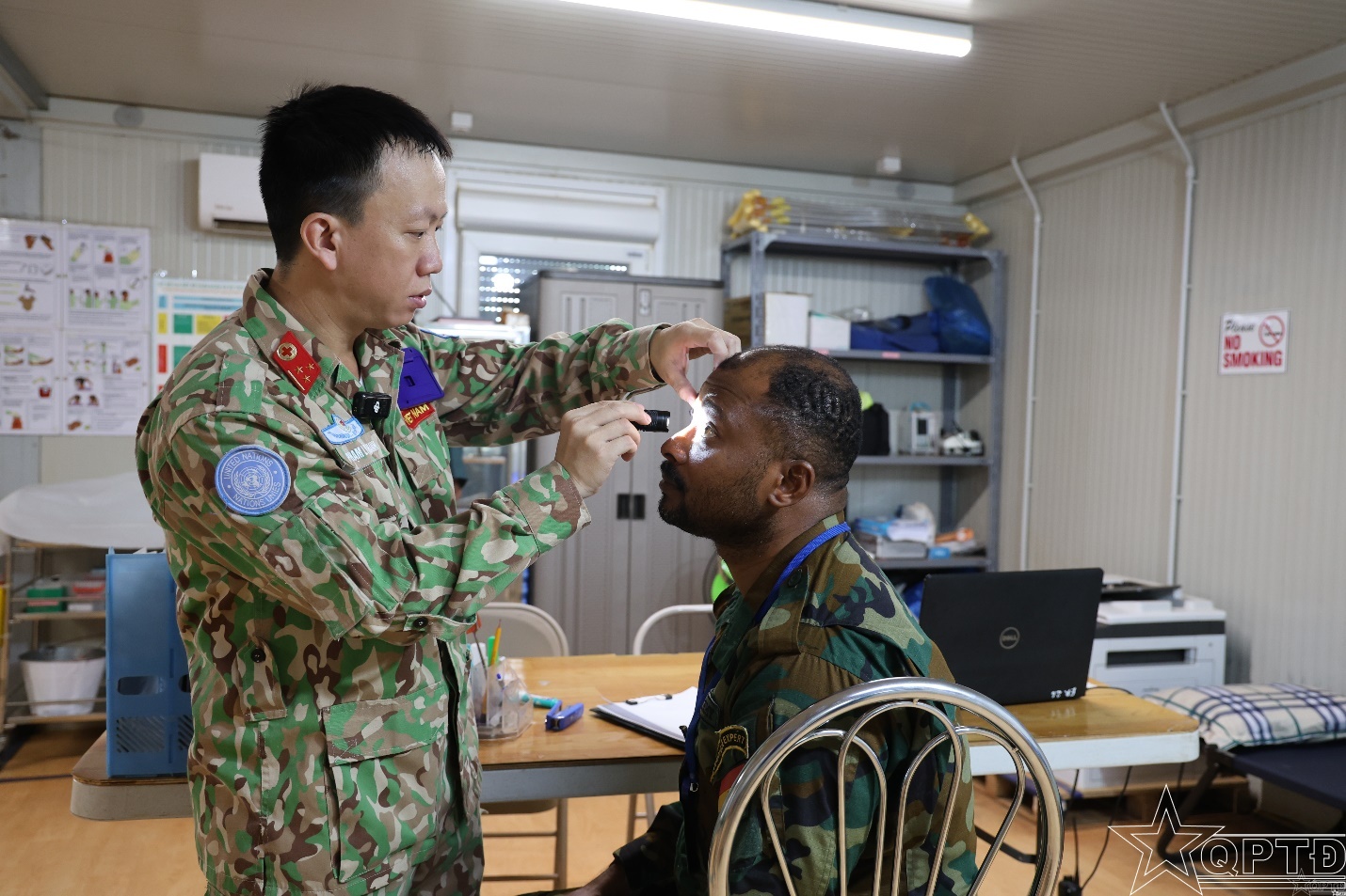 Bệnh nhân nhập viện trong tình trạng sụp mi mắt phải, nhìn đôi, đau đầu và rối loạn vận nhãn. Qua thăm khám và hội chẩn, các bác sĩ chẩn đoán liệt dây thần kinh cấp tính chưa rõ nguyên nhân, nghi ngờ đột quỵ não hoặc tổn thương nội sọ. Với điều kiện cận lâm sàng hạn chế tại Bentiu, Bệnh viện đã xin ý kiến Trưởng y tế Phái bộ và được chấp thuận quyết định vận chuyển bệnh nhân bằng đường không lên tuyến trên tại Juba để có các kỹ thuật chuyên sâu nhằm chẩn đoán và điều trị tiếp tục.