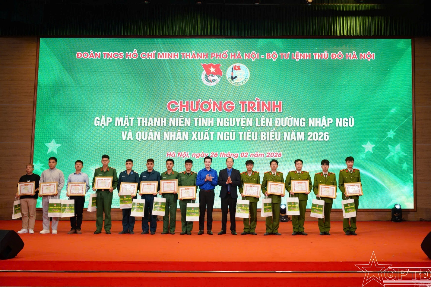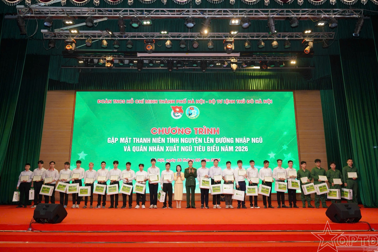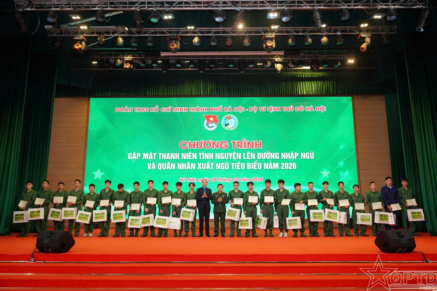 QPTĐ-Sáng 26/2, tại Hội trường Bộ Tư lệnh Thủ đô, Thành đoàn Hà Nội phối hợp với Bộ Tư lệnh Thủ đô Hà Nội tổ chức “Gặp mặt thanh niên tình nguyện lên đường nhập ngũ và quân nhân xuất ngũ tiêu biểu năm 2026”.