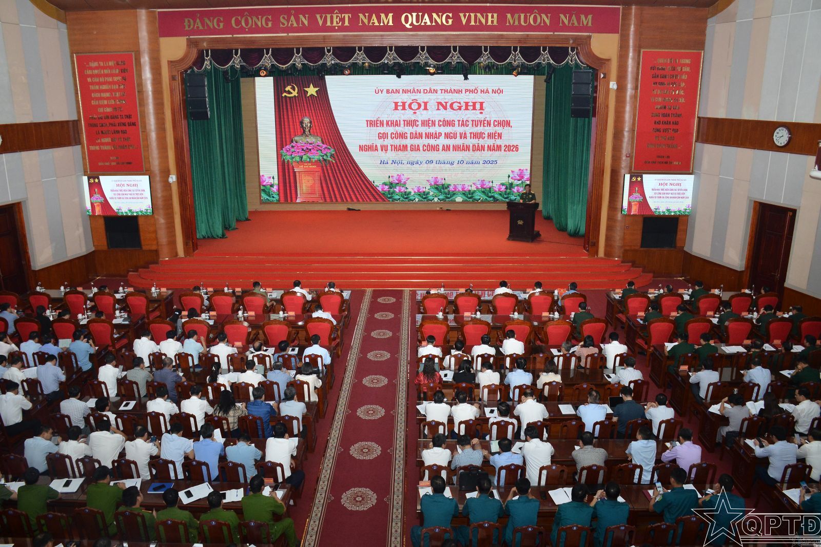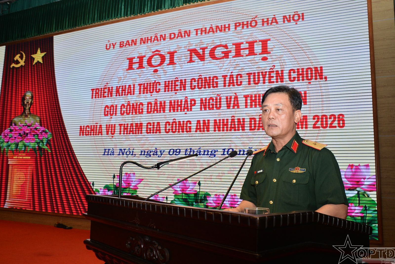QPTĐ-Sáng 9/10, UBND thành phố Hà Nội tổ chức Hội nghị triển khai thực hiện công tác tuyển chọn, gọi công dân nhập ngũ và thực hiện nghĩa vụ tham gia Công an nhân dân năm 2026. Đồng chí Lê Hồng Sơn, Ủy viên Ban Thường vụ Thành ủy, Phó Chủ tịch Thường trực UBND Thành phố chủ trì Hội nghị. Thiếu tướng Đào Văn Nhận, Phó Chủ tịch Thường trực Hội đồng Nghĩa vụ quân sự Thành phố, Tư lệnh Bộ Tư lệnh Thủ đô Hà Nội duy trì Hội nghị thảo luận.
