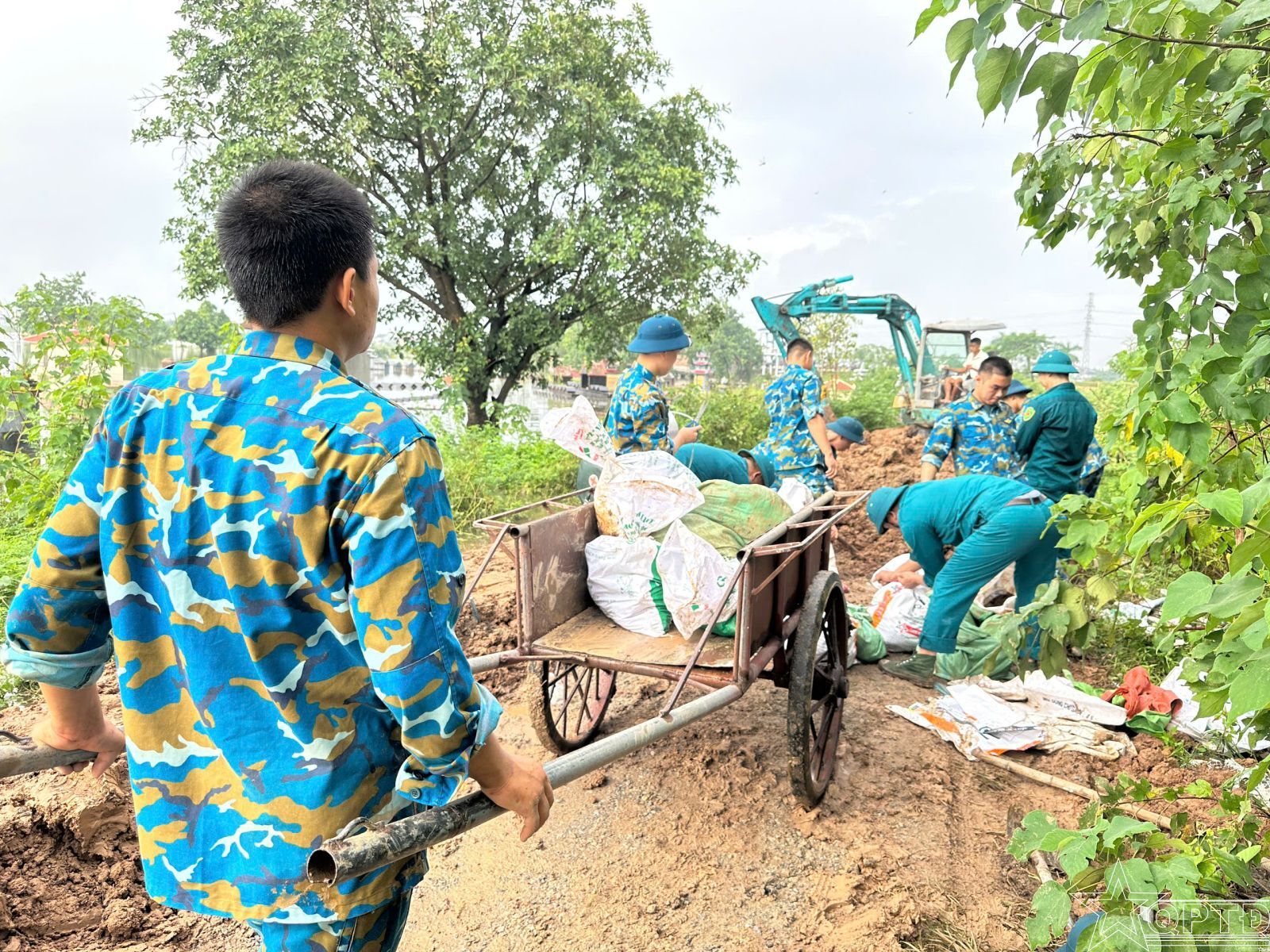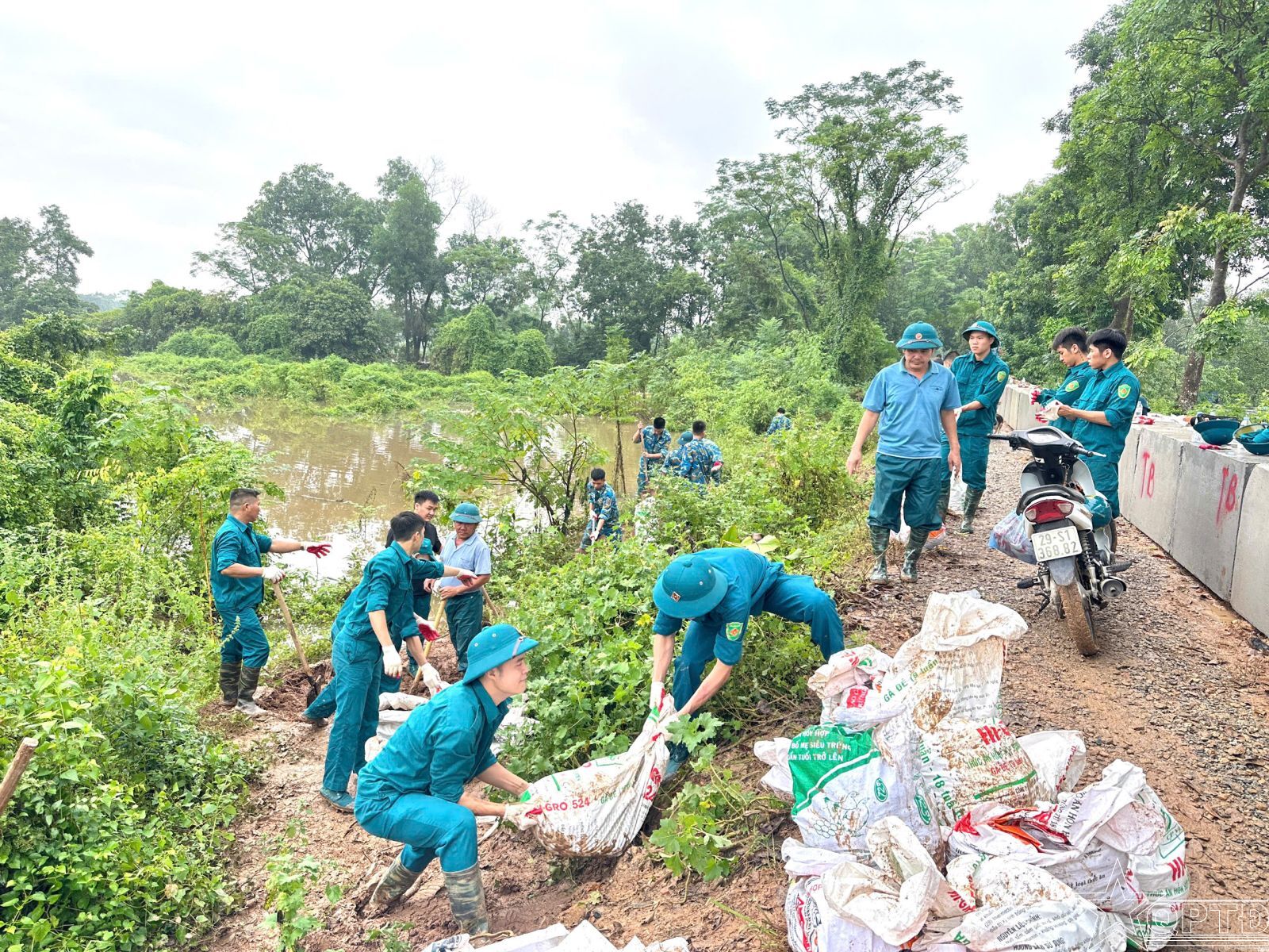 Dân quân xã Thư Lâm cùng cán bộ, chiến sĩ Trung đoàn 236, Sư đoàn 361 tham gia chống tràn đê.