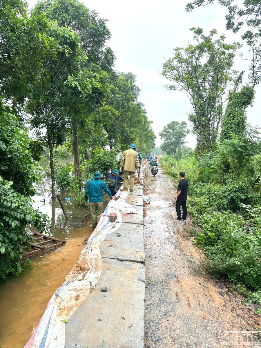 Hơn 300 cán bộ, chiến sĩ LLVT và nhân dân tham gia chống tràn đê Kim Tiên, xã Thư Lâm