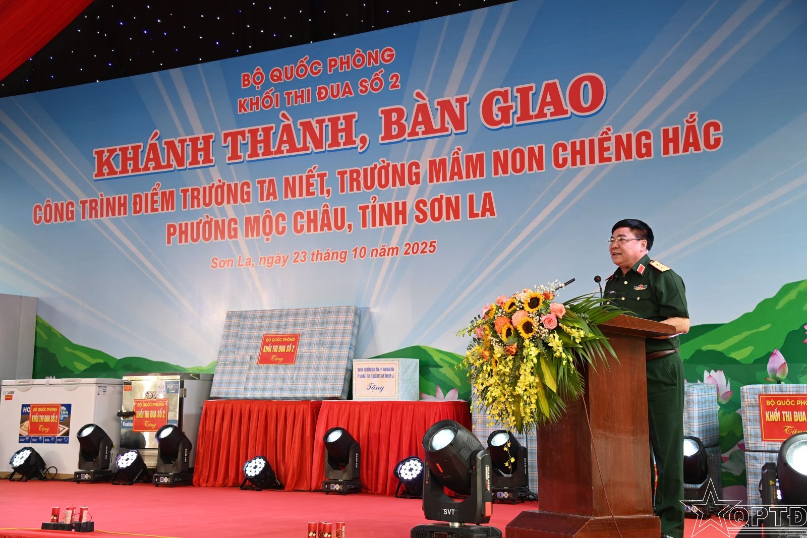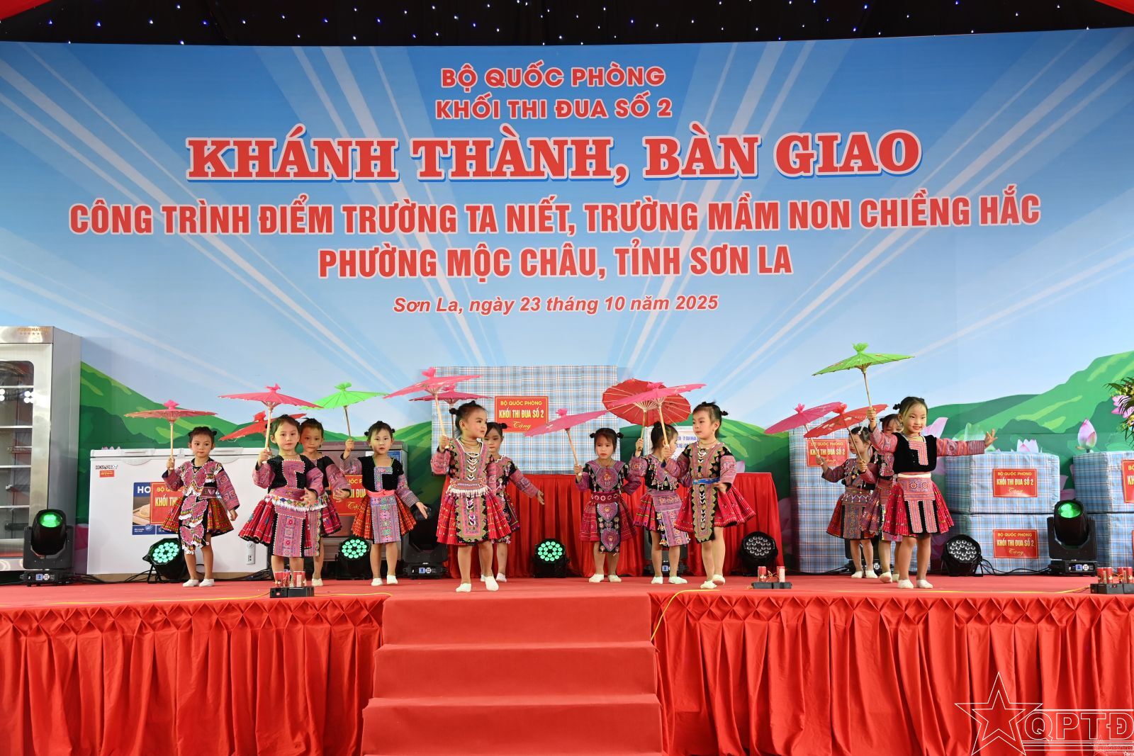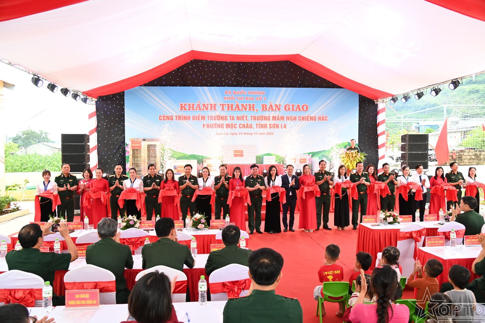 QPTĐ-Chiều 23-10, tại phường Mộc Châu, tỉnh Sơn La, Khối thi đua số 2, Bộ Quốc phòng do Quân khu 2 làm Khối trưởng năm 2025 đã tổ chức khánh thành, bàn giao điểm trường Ta Niết (thuộc Trường mầm non Chiềng Hắc). Dự khánh thành, bàn giao có lãnh đao, chỉ huy các đơn vị thuộc Khối thi đua số 2, Bộ Quốc phòng; lãnh đạo tỉnh Sơn La và phường Mộc Châu.