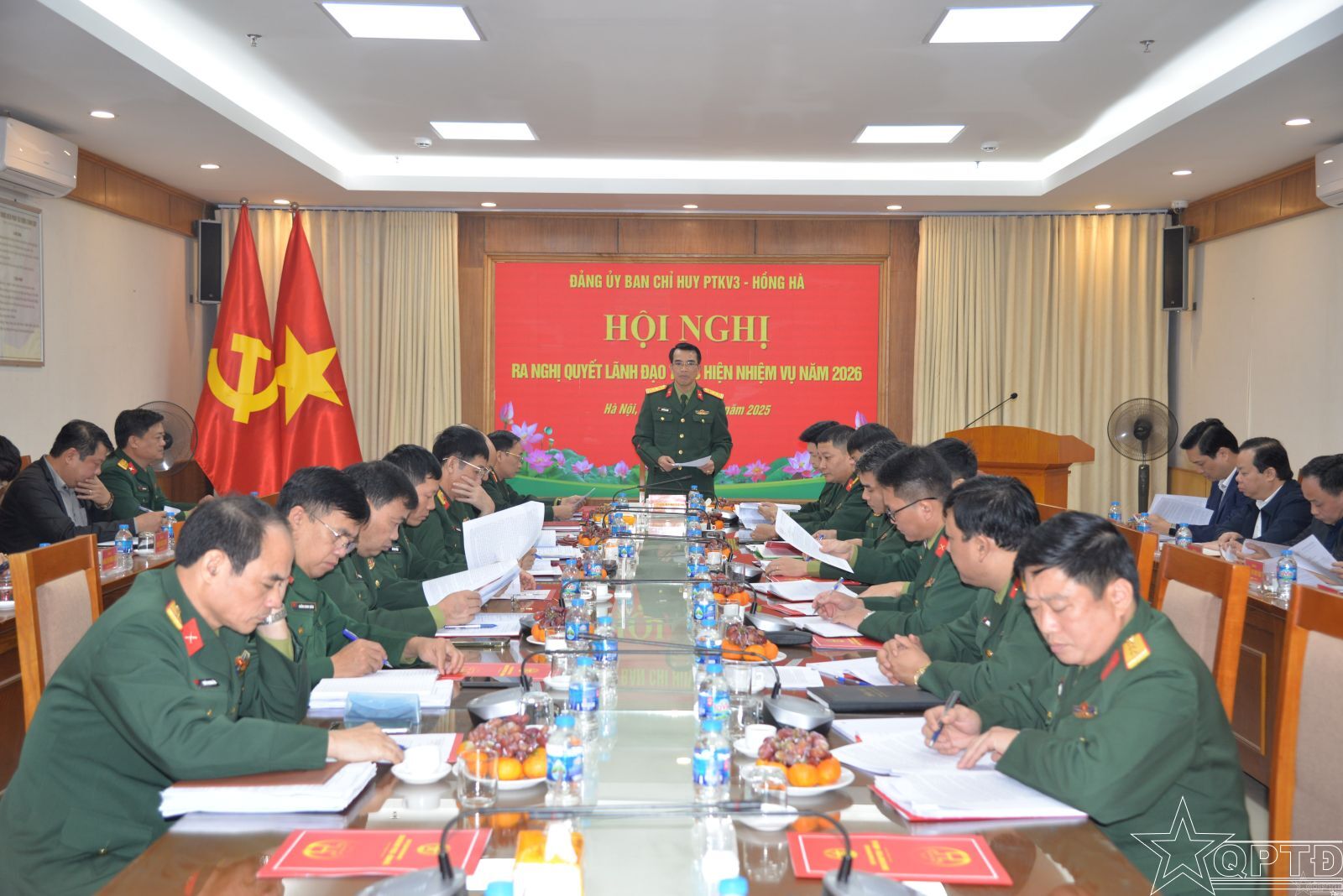 Năm 2026, Đảng ủy Ban Chỉ huy PTKV 3-Hồng Hà đề ra 8 giải pháp lãnh đạo: Nắm chắc tình hình, chủ động tham mưu với Đảng ủy, thủ trưởng Bộ Tư lệnh và phối hợp với cấp ủy, chính quyền địa phương trong chỉ đạo, hướng dẫn thực hiện nhiệm vụ quân sự, quốc phòng sát tình hình thực tiễn; duy trì nghiêm nền nếp chế độ SSCĐ; làm tốt công tác chuẩn bị lực lượng, vật chất, trang bị, mô hình, học cụ... tổ chức tập huấn, huấn luyện, diễn tập đúng, đủ nội dung, chương trình quy định bảo đảm chất lượng, hiệu quả, an toàn; phối hợp hướng dẫn công tác khám tuyển, hoàn thành 100% chỉ tiêu tuyển quân năm 2026; chủ động phối hợp chỉ đạo, rà soát, kiện toàn tổ chức biên chế đáp ứng yêu cầu nhiệm vụ; bảo đảm đầy đủ hậu cần, kỹ thuật, tài chính cho thực hiện nhiệm vụ thường xuyên và đột xuất...