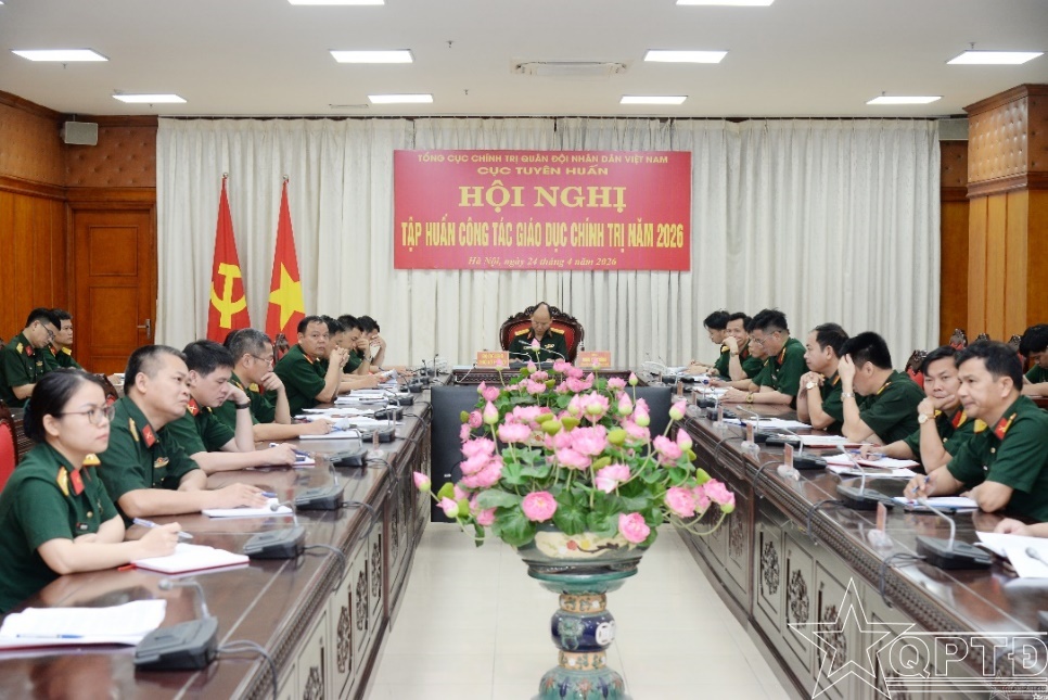 QPTĐ-Ngày 24-4, Cục Tuyên huấn (Tổng cục Chính trị) tổ chức Hội nghị tập huấn công tác giáo dục chính trị năm 2026 theo hình thức trực tiếp kết hợp trực tuyến tại 166 điểm cầu trong toàn quân. Thượng tướng Trương Thiên Tô, Ủy viên Trung ương Đảng, Phó Chủ nhiệm Tổng cục Chính trị dự, phát biểu chỉ đạo khai mạc tập huấn.