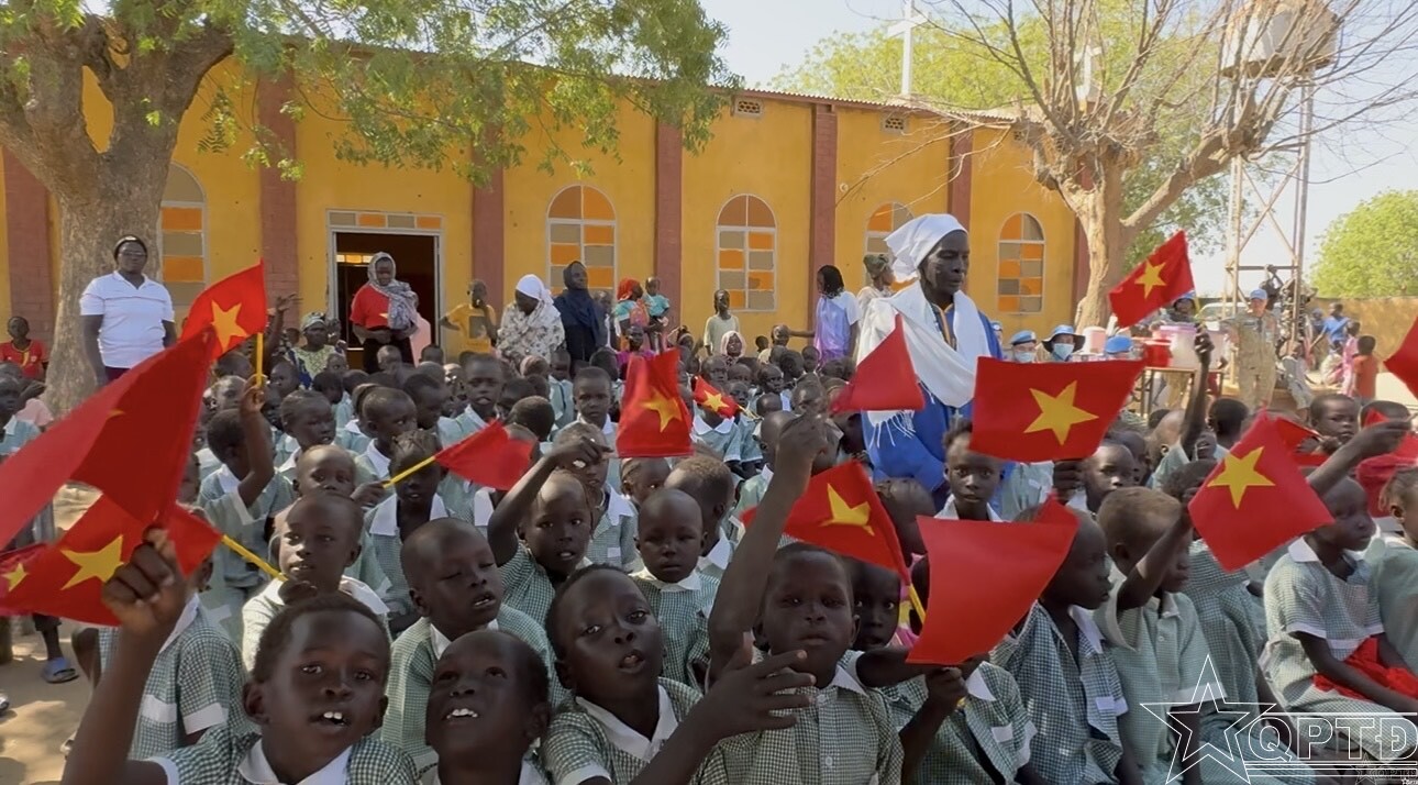 Dấu chân của những người lính thợ còn in đậm nơi mái trường cấp 2 Abyei. Tranh thủ giờ nghỉ giữa các chiến dịch lớn, Đội đã điều động máy móc san lấp, cải tạo khu sân chơi và lối vào lớp học. Hình ảnh những chiếc xe lu khổng lồ vốn dùng để mở đường chiến lược, nay lại tỉ mỉ, nhẹ nhàng cán phẳng từng mét đất dưới hiên lớp học để các em không còn phải lội qua bụi mù hay vấp ngã là một biểu tượng đầy nhân văn.