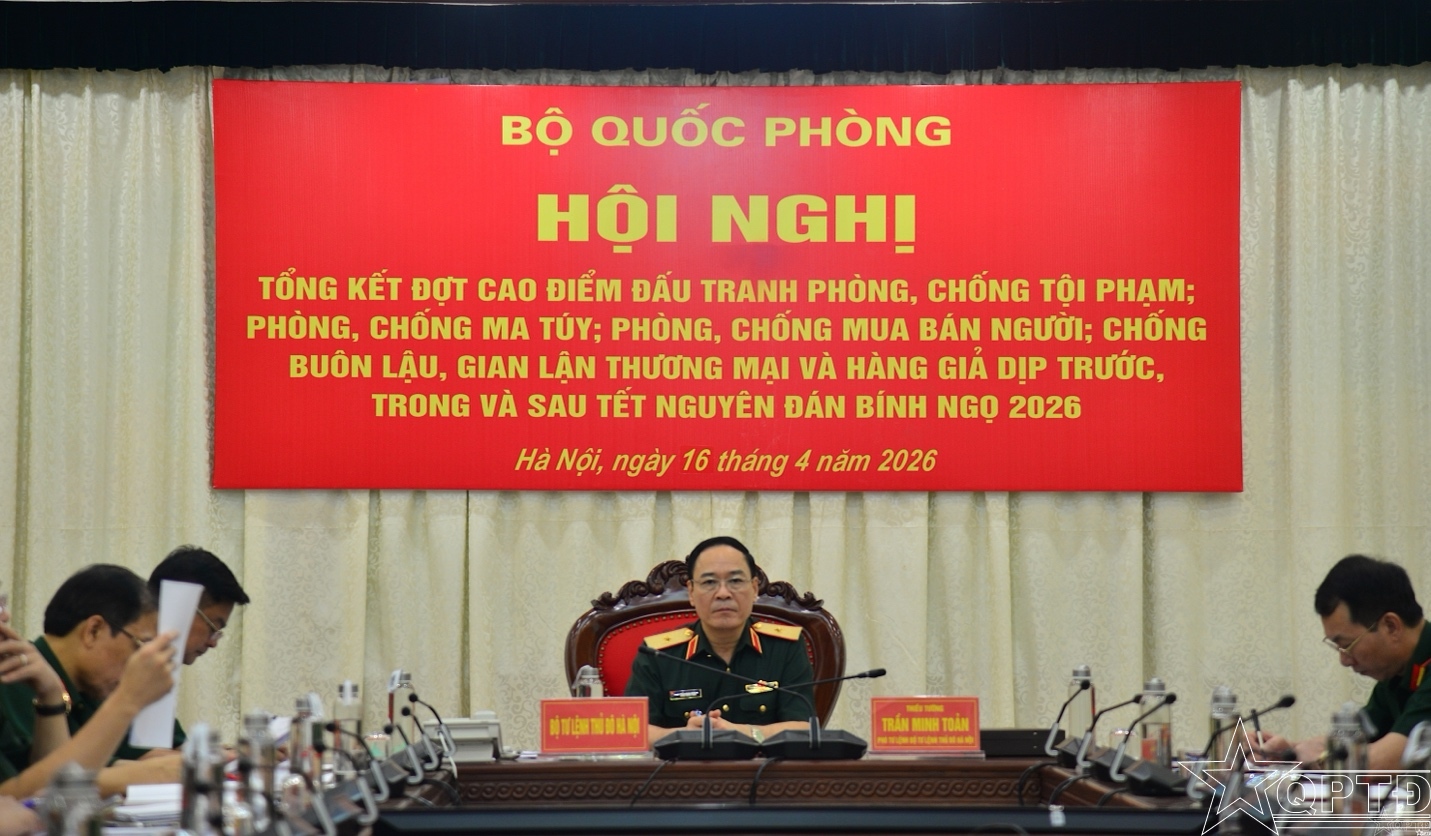 QPTĐ-Sáng 16-4, Bộ Quốc phòng tổ chức Hội nghị Tổng kết đợt cao điểm đấu tranh phòng, chống tội phạm; phòng, chống ma tuý, chống mua bán người; chống buôn lậu, gian lận thương mại và hàng giả dịp trước, trong và sau Tết Nguyên đán Bính Ngọ 2026 với thức trực tiếp kết hợp trực tiếp.