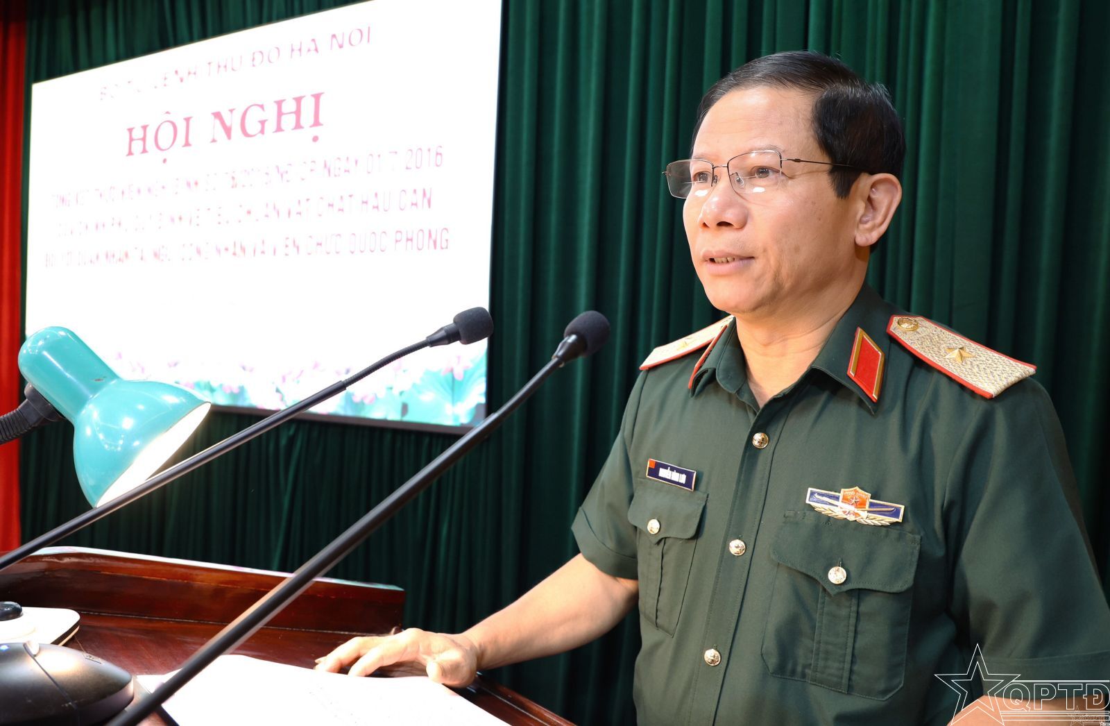 Thiếu tướng Nguyễn Đình Lưu, Phó Tư lệnh Bộ Tư lệnh Thủ đô Hà Nội phát biểu tại Hội nghị.