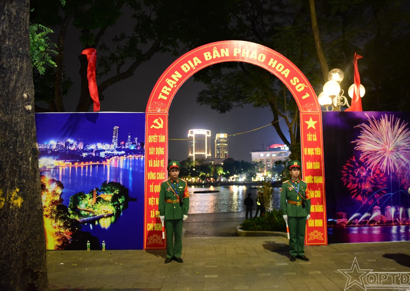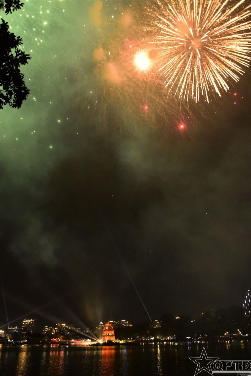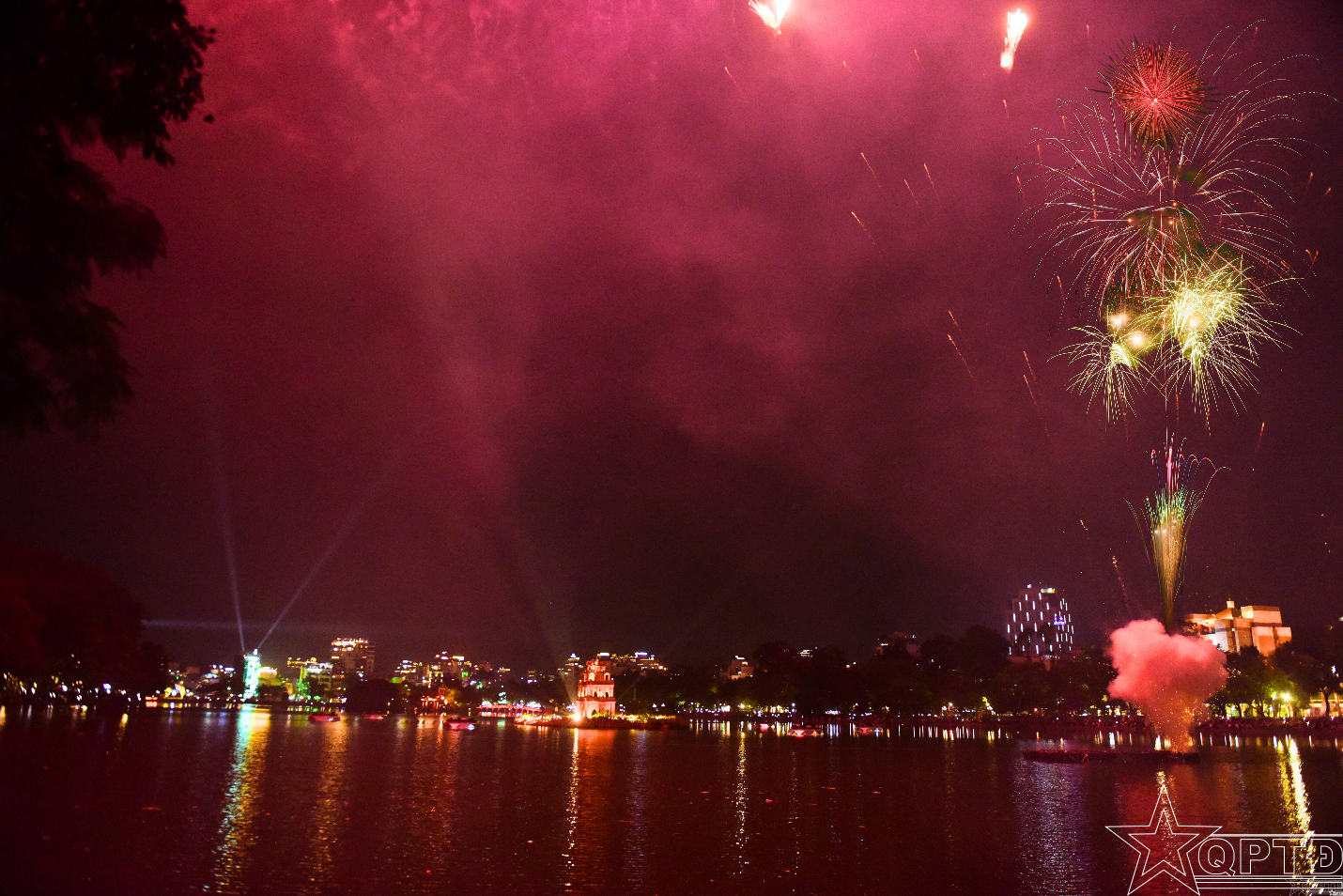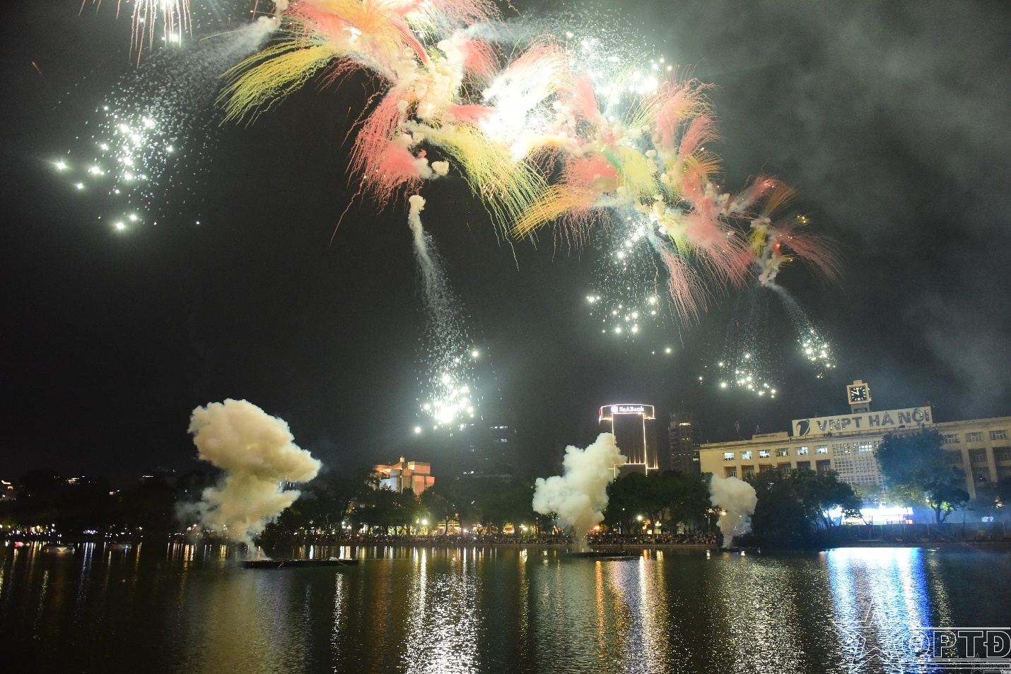 Sự kết hợp giữa pháo hoa tầm cao và trận địa hỏa thuật trên mặt hồ Hoàn Kiếm tạo nên bức tranh ánh sáng đa sắc, khẳng định công tác chuẩn bị công phu, sáng tạo của các lực lượng thực hiện nhiệm vụ.