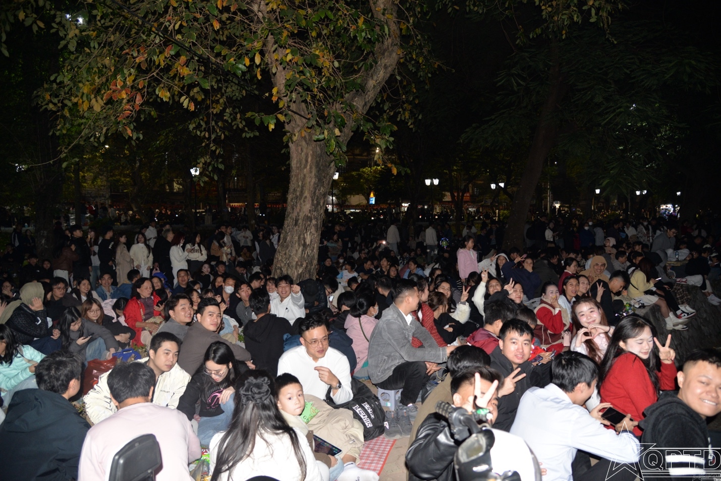 Người dân náo nức đợi màn trình diễn pháo hoa tại Công viên Thống Nhất.