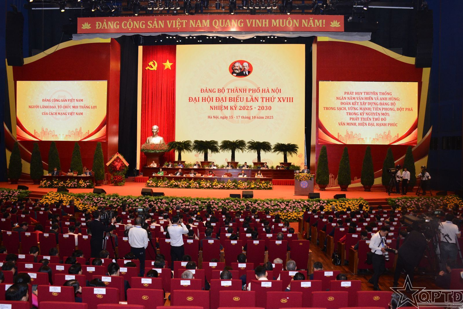 QPTĐ-Chiều 16-10, theo Chương trình được thông qua, Đại hội Đại biểu Đảng bộ thành phố Hà Nội lần thứ XVIII, nhiệm kỳ 2025-2030 tiến hành bầu Ban Chấp hành Đảng bộ thành phố Hà Nội lần thứ XVIII, nhiệm kỳ 2025-2030.