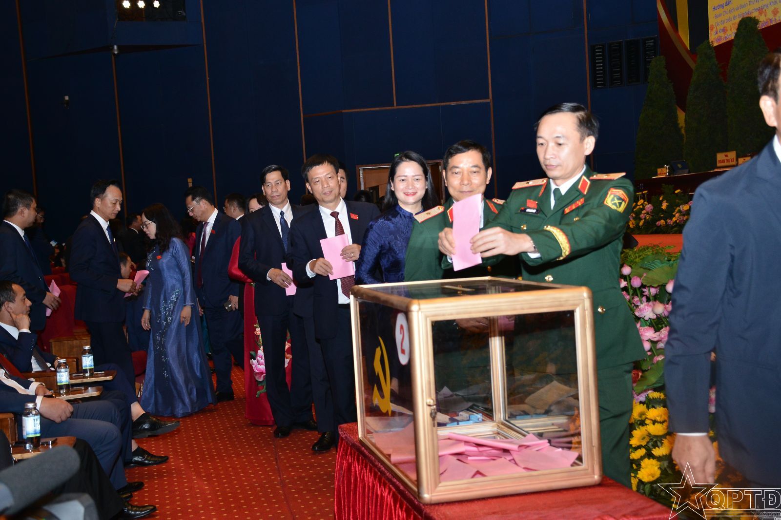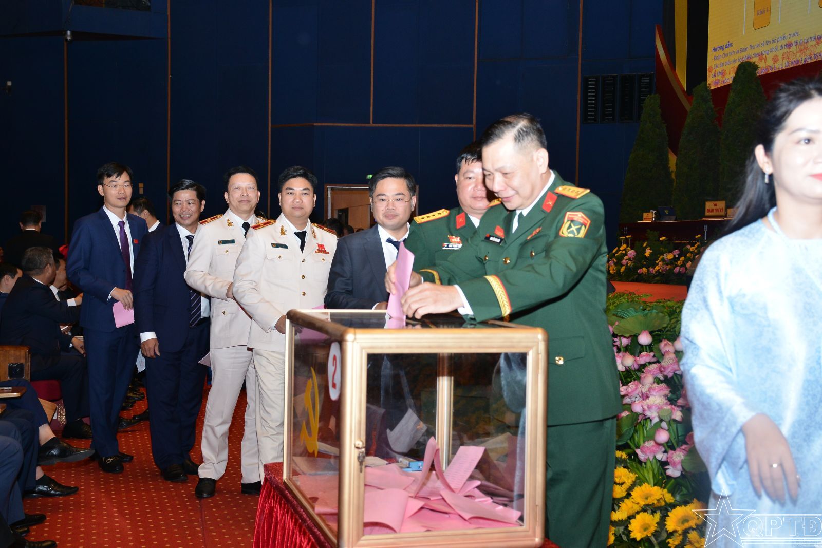 Đại biểu Bộ Tư lệnh Thủ đô Hà Nội bỏ phiếu bầu Ban Chấp hành Đảngthành phố Hà Nội khóa XVIII.