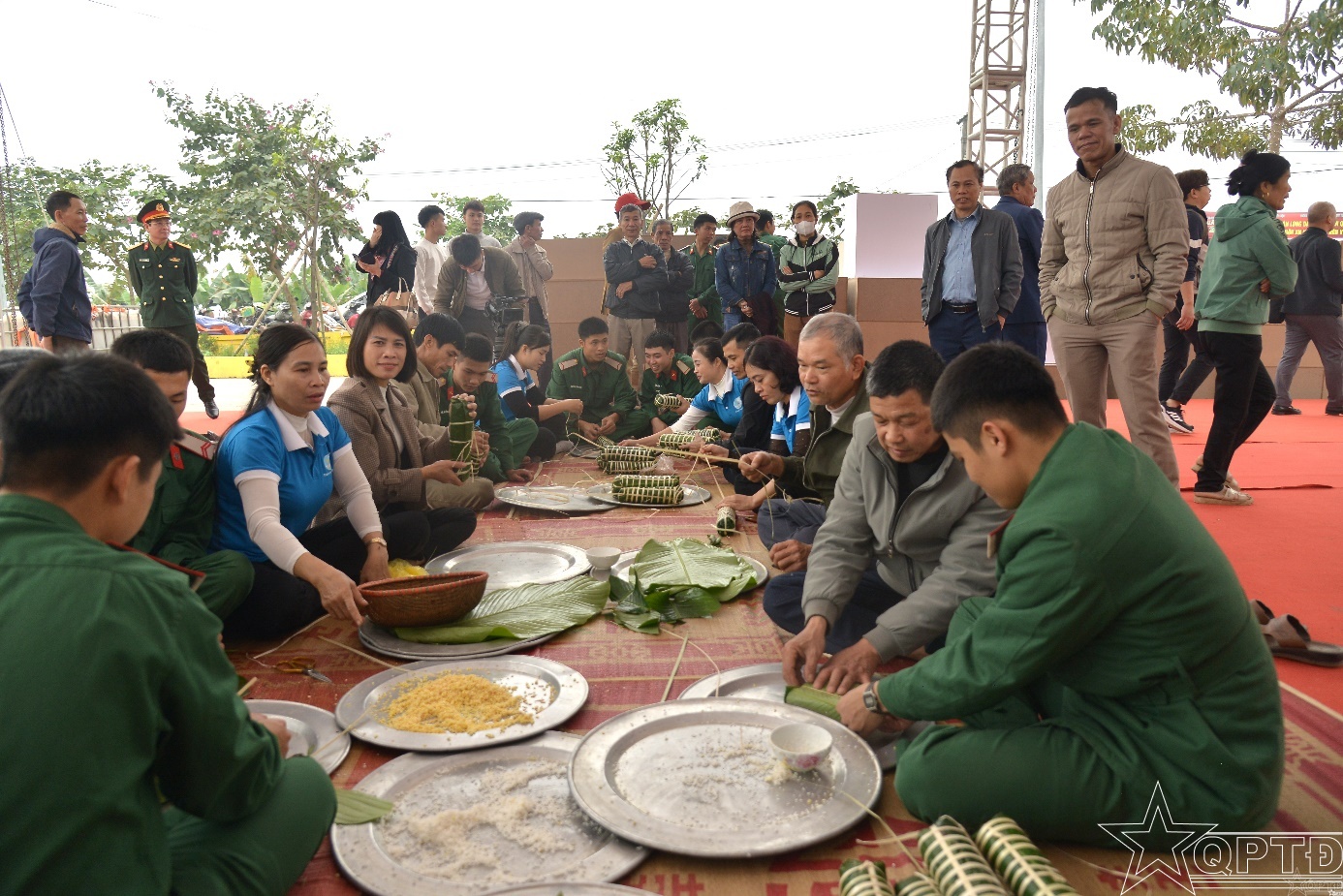 Hội thi gói bánh chưng thu hút đông đảo cán bộ, chiến sĩ và nhân dân tham gia.