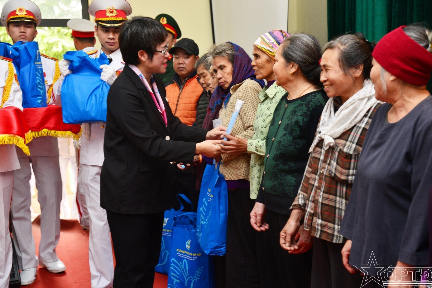 Bà Dương Minh Ánh, Đại biểu Quốc hội khoá 15, Phó Chủ tịch Hội LHPN thành phố Hà Nội tặng quà cho các đối tượng.