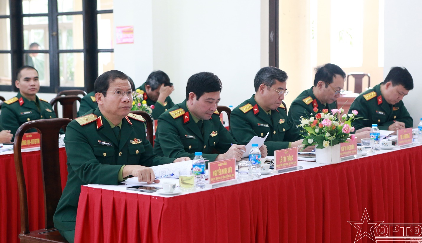 Bên cạnh đó, Thiếu tướng Nguyễn Đình Lưu yêu cầu đơn vị cần tiếp tục duy trì chặt chẽ trực SSCĐ; nắm chắc tình hình địa bàn; tập trung khắc phục triệt để những hạn chế; chuẩn bị giáo án, mô hình học cụ, sáng kiến và thao trường, nâng cao chất lượng huấn luyện cho các đối tượng; phối hợp với cấp uỷ, chính quyền các địa phương lãnh đạo, chỉ đạo, hướng dẫn Ban CHQS các xã hoàn thành chỉ tiêu tuyển chọn và gọi công dân nhập ngũ năm 2026 và công tác đăng ký, quản lý chặt chẽ QNDB, phương tiện kỹ thuật dự bị; thường xuyên rà soát, bổ sung kế hoạch xây dựng, huy động lực lượng DBĐV; hoàn thành 100% chỉ tiêu huy động huấn luyện, diễn tập, kiểm tra SSĐV năm 2026; quán triệt và triển khai thực hiện nghiêm các chỉ thị, nghị quyết của Ban Chấp hành TW, Bộ Chính trị; nâng cao chất lượng giáo dục chính trị; chỉ đạo bảo đảm tốt công tác hậu cần-kỹ thuật, tài chính cho thực hiện các nhiệm vụ thường xuyên và đột xuất của đơn vị…