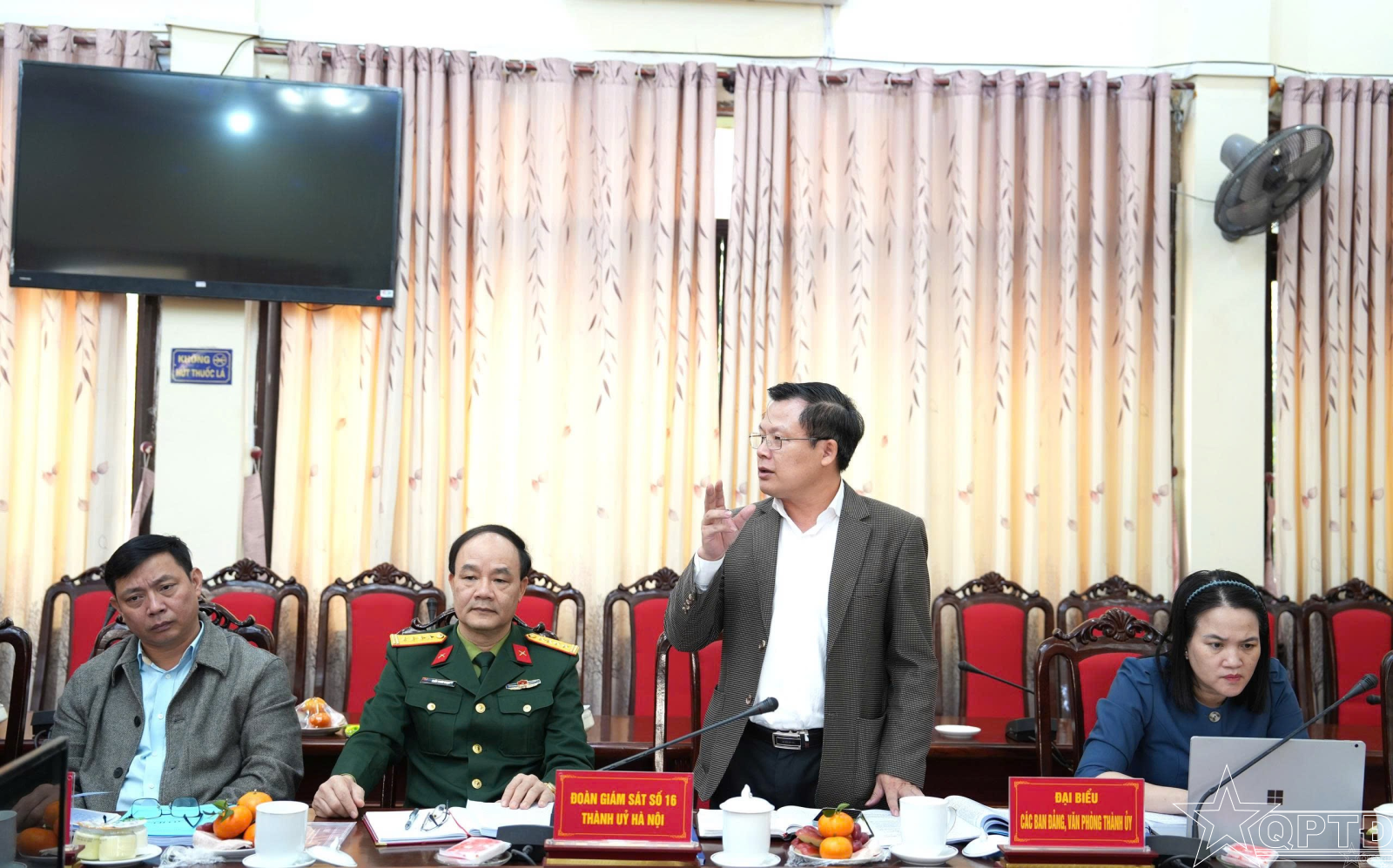Thiếu tướng Đào Văn Nhận, Ủy viên Ban Thường vụ Thành ủy, Phó Bí thư Đảng ủy, Tư lệnh Bộ Tư lệnh, Trưởng Đoàn giám sát số 16 chủ trì buổi làm việc.