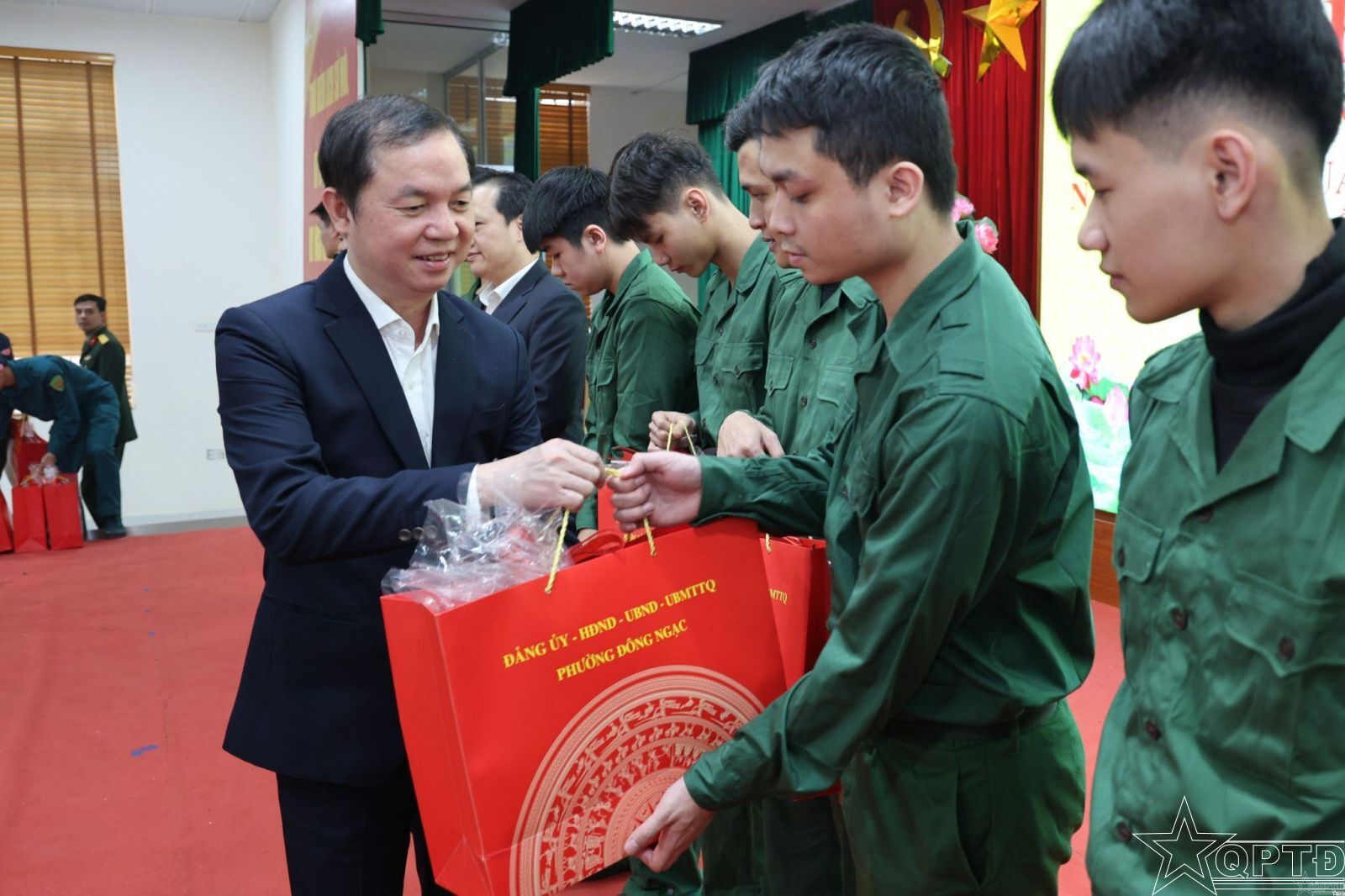 Đối với công dân chuẩn bị lên đường nhập ngũ, đồng chí Bí thư Đảng ủy phường đã gửi lời động viên đến gia đình, người thân, mong muốn các thanh niên phát huy truyền thống cách mạng quê hương, ra sức khắc phục mọi khó khăn, không ngừng tu dưỡng phẩm chất đạo đức, tích cực học tập, huấn luyện, gương mẫu trong rèn luyện kỷ luật; xứng đáng với niềm tự hào, tin yêu của quê hương; đồng thời, ân cần nhắc nhở các thanh niên phải giữ gìn sức khỏe, chuẩn bị tốt về mọi mặt, sẵn sàng lên đường nhập ngũ.