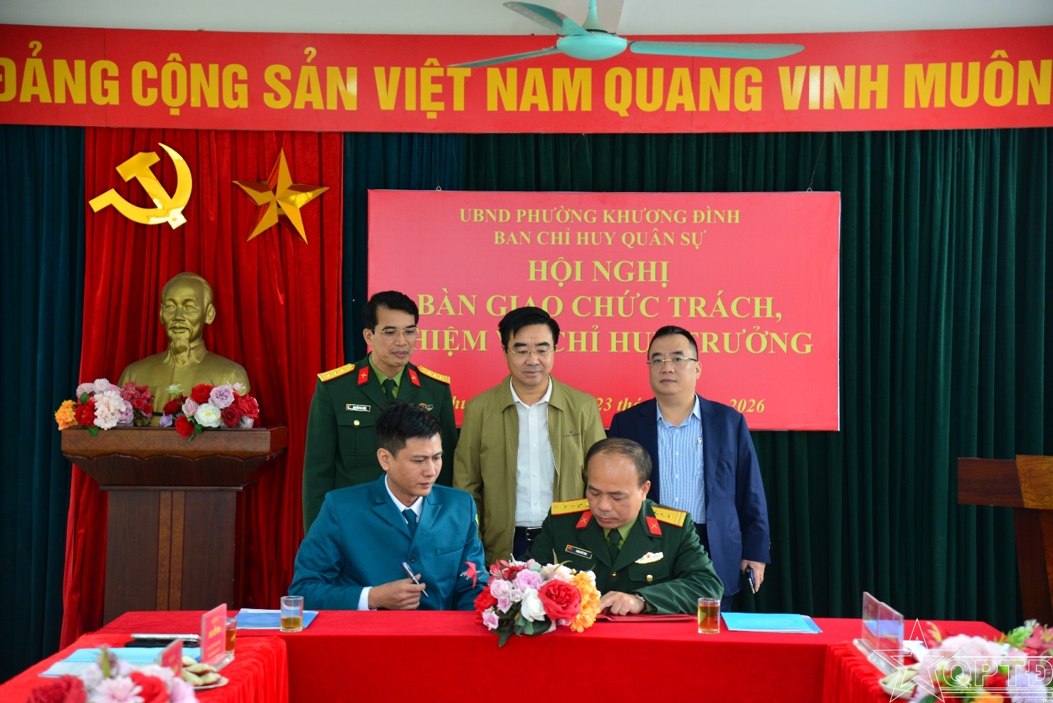 Hội nghị đã tiến hành ký kết biên bản bàn giao chức trách, nhiệm vụ Chỉ huy trưởng Ban CHQS phường Khương Đình theo đúng quy định và kết thúc trong không khí nghiêm túc, đoàn kết, thống nhất.