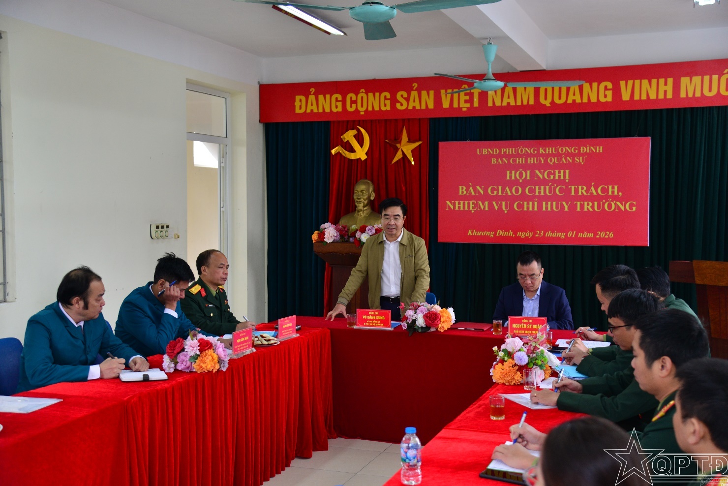 Phát biểu tại Hội nghị, đồng chí Võ Đăng Dũng, Bí thư Đảng uỷ, Bí thư Chi bộ quân sự phường ghi nhận và đánh giá cao những đóng góp, trách nhiệm của đồng chí Đặng Công Huân, nguyên Chỉ huy trưởng Ban CHQS phường trong thời gian công tác; đồng thời tin tưởng đồng chí Thượng tá Doãn Viết Sơn, Chỉ huy trưởng Ban CHQS phường Khương Đình, người đã có nhiều kinh nghiệm và trải qua các cương vị công tác ở địa phương sẽ cùng với Ban CHQS phường tiếp tục phát huy tinh thần đoàn kết, chủ động; tham mưu cho cấp ủy, chính quyền địa phương lãnh đạo, chỉ đạo thực hiện hiệu quả nhiệm vụ quân sự, quốc phòng; giữ vững ổn định chính trị, trật tự an toàn xã hội trên địa bàn.
