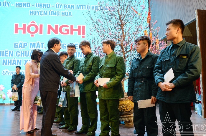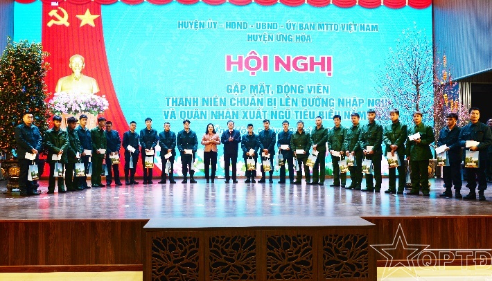 Phát biểu tại buổi gặp mặt, đồng chí Nguyễn Tiến Thiết, Phó Bí thư Huyện ủy, Chủ tịch UBND huyện, Chủ tịch Hội đồng Nghĩa vụ quân sự huyện đã giao nhiệm vụ cho 190 thanh niên đại diện cho tuổi trẻ huyện Ứng Hòa hăng hái lên đường làm nhiệm vụ bảo vệ Tổ quốc. Đồng chí đề nghị, các tân binh tiếp tục phát huy truyền thống của quê hương “Chiếc gậy Trường Sơn” xung kích, tình nguyện, là những hạt nhân tích cực tiếp nối truyền thống của thế hệ đi trước, chấp hành nghiêm kỷ luật quân đội, ra sức rèn luyện, học tập, tu dưỡng, phấn đấu hoàn thành xuất sắc nhiệm vụ bảo vệ Tổ quốc, xứng đáng với truyền thống của Quân đội nhân dân và Công an nhân dân Việt Nam. Các ban, ngành, đoàn thể, các xã, thị trấn tổ chức tốt hoạt động thăm hỏi, động viên các tân binh, đặc biệt là các tân binh có hoàn cảnh khó khăn để yên tâm thực hiện nhiệm vụ.
