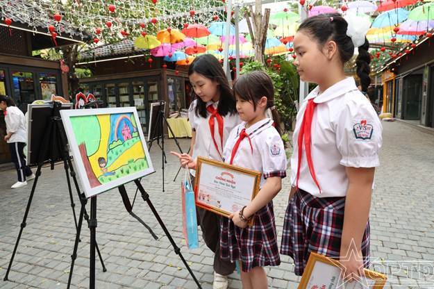 Khu trưng bày tác phẩm hội họa thu hút sự quan tâm của các độc giả nhí.
