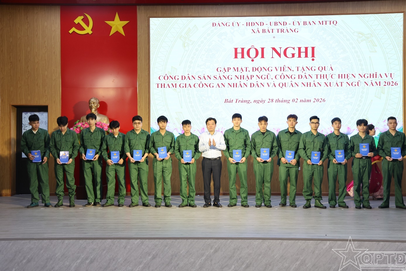 Thay mặt cho các thanh niên chuẩn bị lên đường nhập ngũ năm 2026, công dân Trần Quang Vinh đã bày tỏ niềm xúc động và tự hào khi được khoác lên mình bộ quân phục, được tiếp bước cha anh lên đường thực hiện nghĩa vụ quân sự, bảo vệ Tổ quốc, đó không chỉ là trách nhiệm, nghĩa vụ mà còn là vinh dự to lớn của tuổi trẻ với quê hương, đất nước; cảm ơn sự quan tâm của lãnh đạo cấp ủy Đảng ủy, chính quyền, các ban, ngành, đoàn thể và gia đình dành cho các tân binh; đồng thời hứa sẽ luôn giữ vững truyền thống tốt đẹp của quê hương Bát Tràng, tích cực học tập, rèn luyện, vượt qua mọi khó khăn, thử thách, chấp hành nghiêm kỷ luật quân đội, quyết tâm phấn đấu hoàn thành tốt mọi nhiệm vụ được giao.