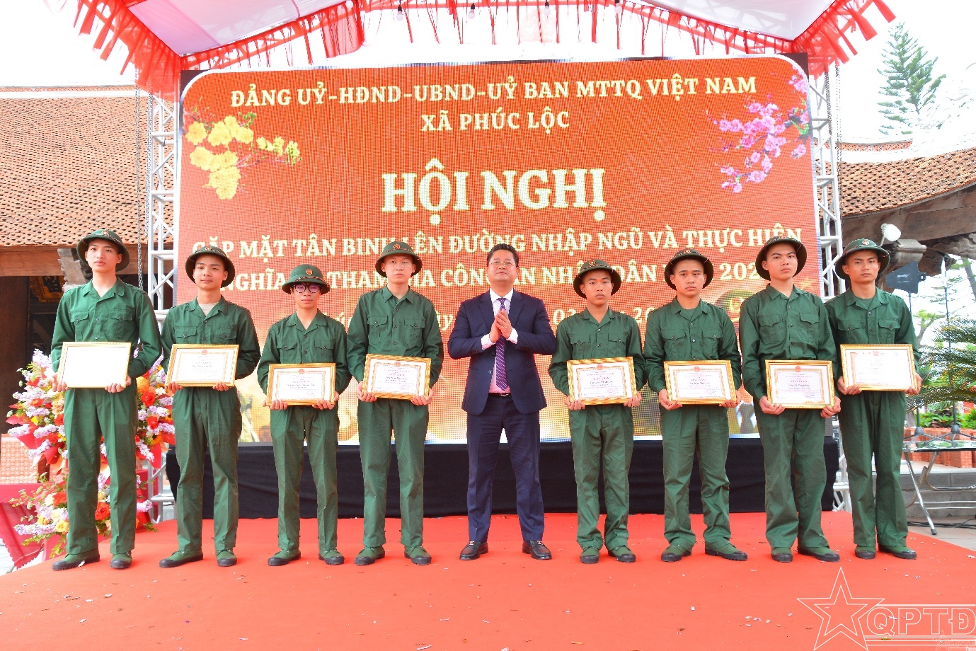 QPTĐ-Sáng 29-2, tại Đình Vân Cốc, Đảng ủy, HĐND, UBND, Ủy ban Mặt trận Tổ quốc Việt Nam xã Phúc Lộc đã long trọng tổ chức gặp mặt, tặng quà thanh niên chuẩn bị lên đường nhập ngũ và tham gia nghĩa vụ Công an nhân dân năm 2026.