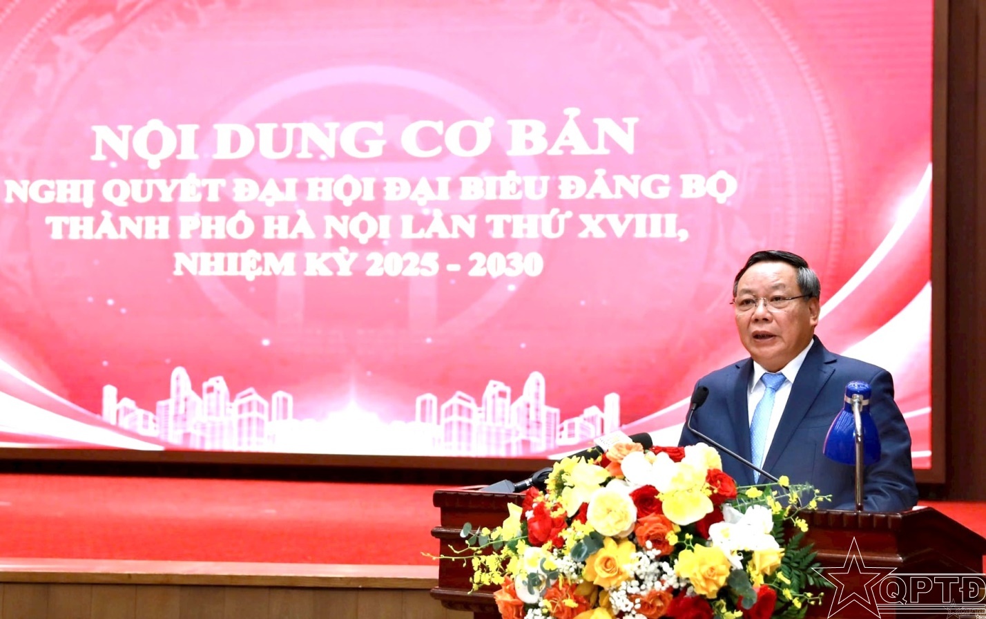 Sau phần khai mạc, các đồng chí Thường trực Thành ủy, Trưởng ban Ban Tổ chức Thành ủy, lãnh đạo UBND Thành phố đã trực tiếp báo cáo nhưng nội dung trọng tâm của Nghị quyết đại hội và Chương trình hành động thực hiện Nghị quyết Đại hội Đảng bộ thành phố Hà Nội lần thứ XVIII, nhiệm kỳ 2025 - 2030. Mở đầu hội nghị, đồng chí Nguyễn Văn Phong, Phó Bí thư Thường trực Thành ủy Hà Nội đã quán triệt những nội dung cơ bản của Văn kiện Đại hội đại biểu lần thứ XVIII Đảng bộ thành phố Hà Nội, nhiệm kỳ 2025 - 2030. Theo đó, mục tiêu phát triển của Thành phố đến năm 2030: Hà Nội là Thủ đô “Văn hiến - Văn minh - Hiện đại - Hạnh phúc”, xanh, thông minh, nơi hội tụ tinh hoa văn hóa, hội nhập quốc tế sâu rộng, có sức cạnh tranh cao, có trình độ phát triển ngang tầm thủ đô các nước phát triển trong khu vực; là trung tâm, động lực thúc đẩy phát triển vùng đồng bằng sông Hồng, khu vực phía Bắc, là cực tăng trưởng có vai trò dẫn dắt kinh tế của cả nước, có tầm ảnh hưởng trong khu vực; là trung tâm kinh tế, tài chính lớn; trung tâm hàng đầu về văn hóa, giáo dục và đào tạo, y tế, khoa học, công nghệ và đổi mới sáng tạo; chính trị, xã hội ổn định, thành phố thanh bình, người dân hạnh phúc. Tầm nhìn đến năm 2045: Thủ đô Hà Nội là thành phố kết nối toàn cầu, có mức sống và chất lượng cuộc sống cao; kinh tế, văn hoá, xã hội phát triển toàn diện, đặc sắc và hài hoà, tiêu biểu cho cả nước; có trình độ phát triển ngang tầm thủ đô các nước phát triển trong khu vực và trên thế giới. GRDP bình quân đầu người đạt trên 36.000 USD.