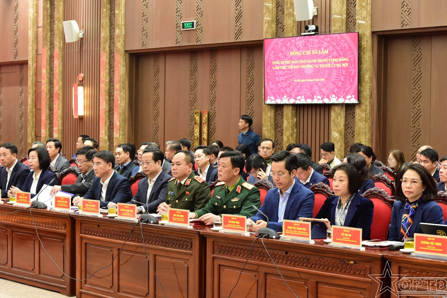 QPTĐ-Sáng 10-1, tại trụ sở Thành ủy Hà Nội, Tổng Bí thư Tô Lâm cùng các đồng chí Ủy viên Bộ Chính trị: Thủ tướng Chính phủ Phạm Minh Chính, Chủ tịch Quốc hội Trần Thanh Mẫn đã có buổi làm việc với Ban Thường vụ Thành ủy Hà Nội về đề xuất xây dựng Quy hoạch tổng thể Thủ đô tầm nhìn 100 năm gắn với hoàn thiện thể chế phát triển; định hướng mô hình phát triển kinh tế - xã hội và mục tiêu tăng trưởng hai con số trong giai đoạn tới.