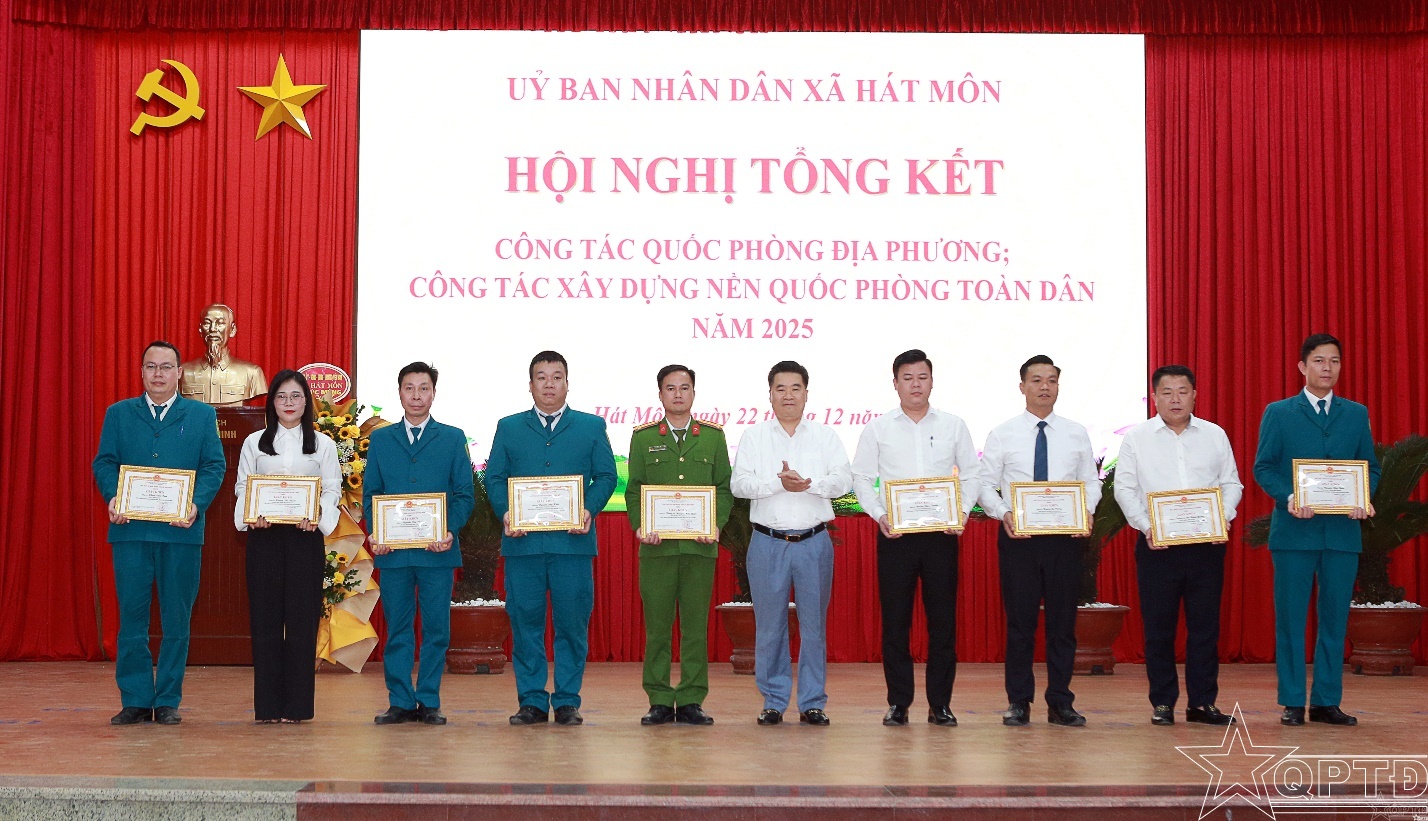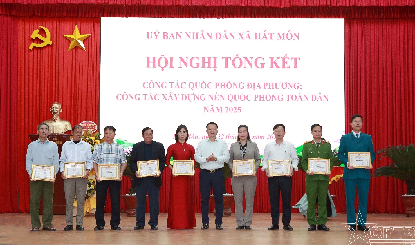 10 tập thể và 22 cá nhân được tặng Giấy khen của UBND xã Hát Môn trong thực hiện tốt nhiệm vụ quân sự, quốc phòng năm 2025.